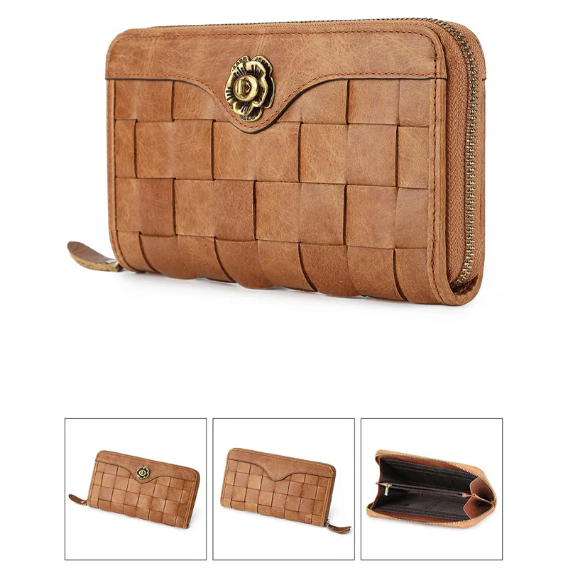 Ce portefeuille femme rétro de syle vintage devrait vous séduire immédiatement. A la fois élégant et sophistiqué avec ses lanières de cuir croisées, ce portefeuille est indémodable. Son agencement et sa taille généreuse permettrons d’y loger l’ensemble de vos documents.