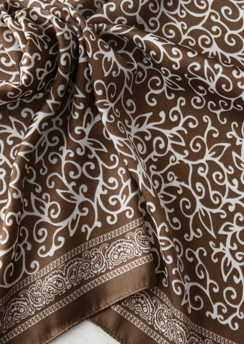 Modèle carré impriméTissu satin, souple et fluideDimensions : 70 x 70 cm 100% polyester