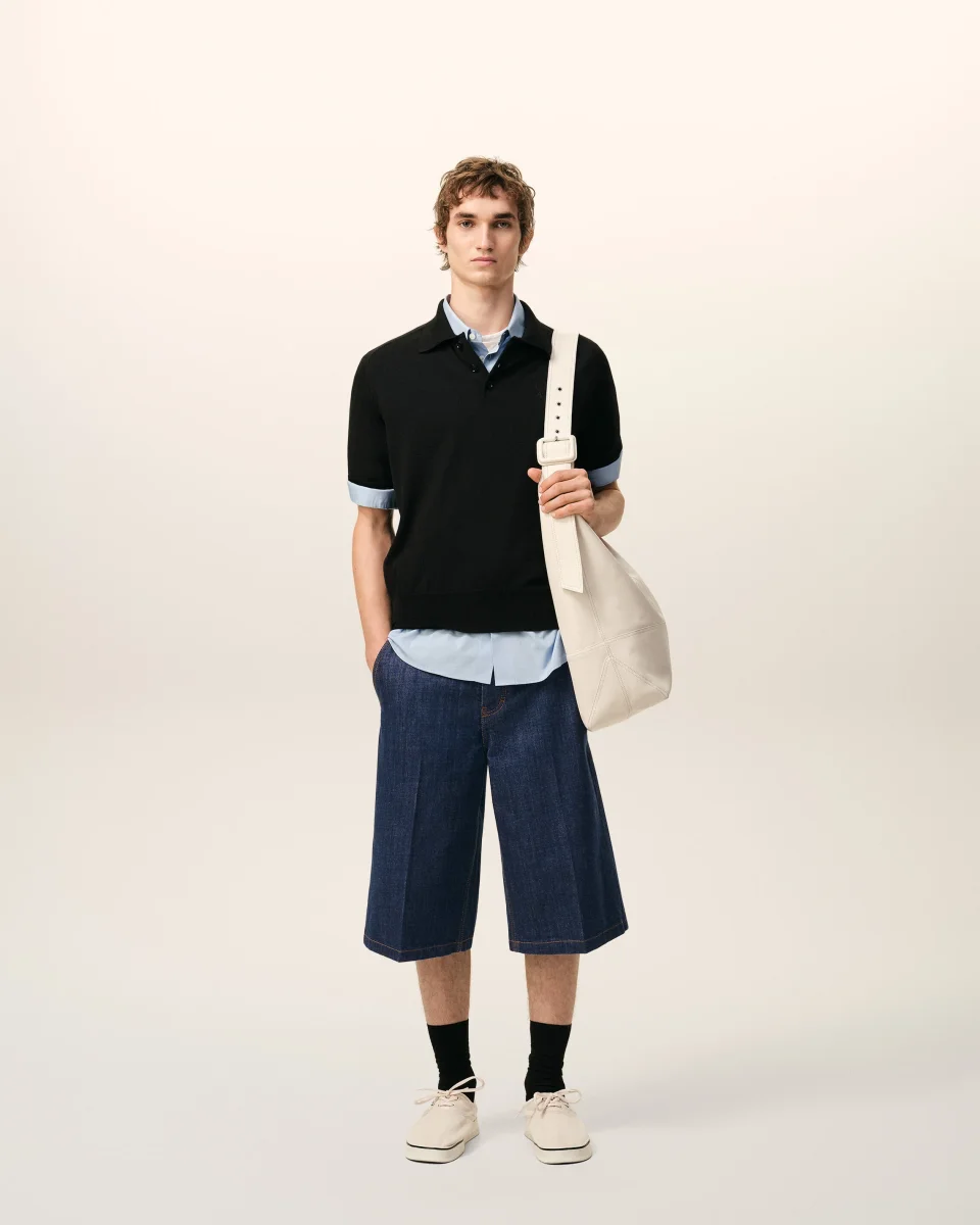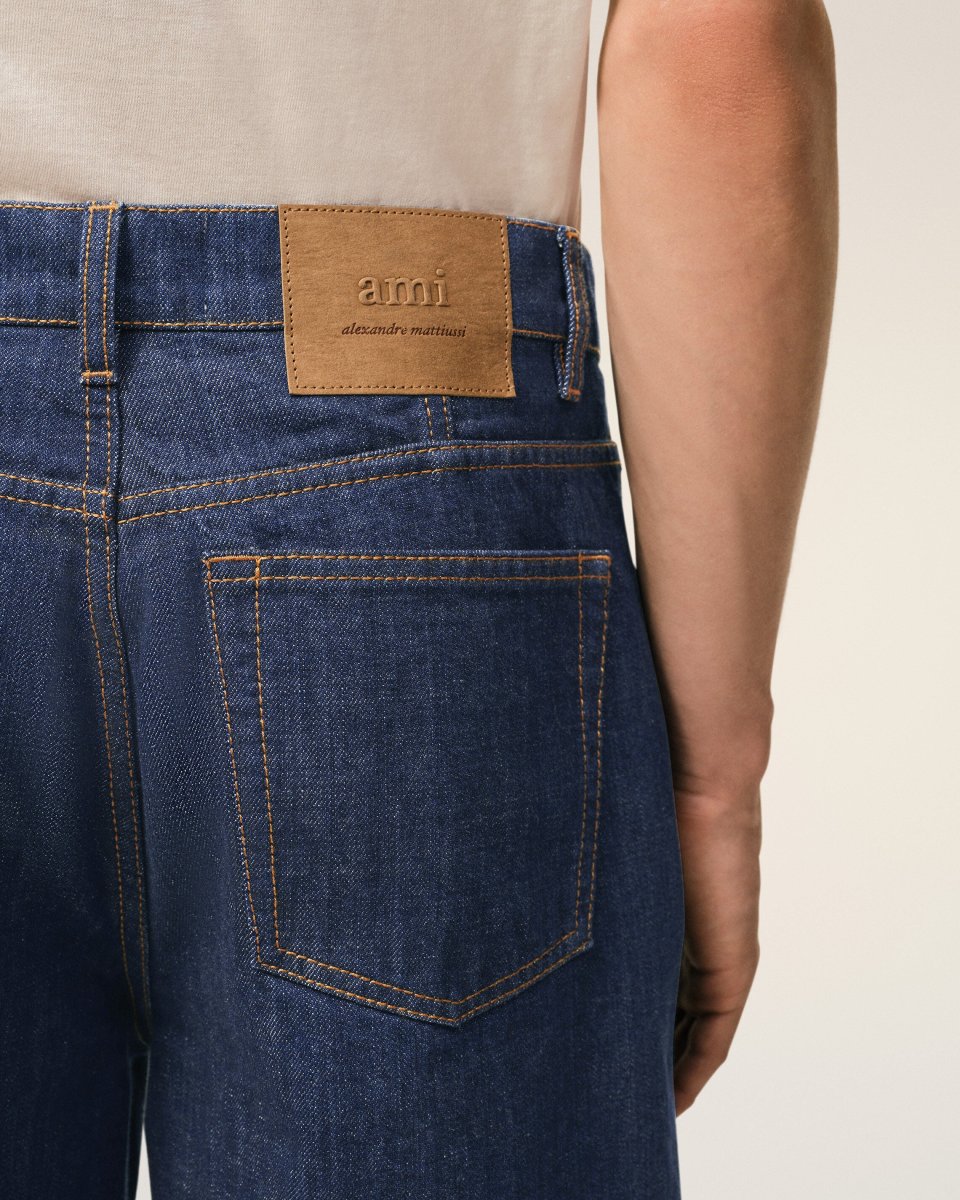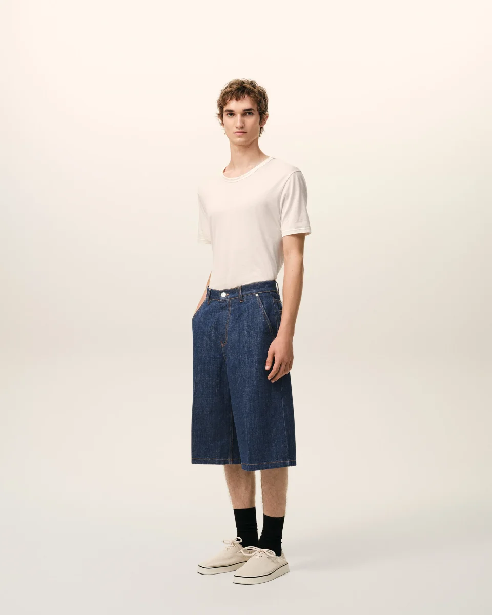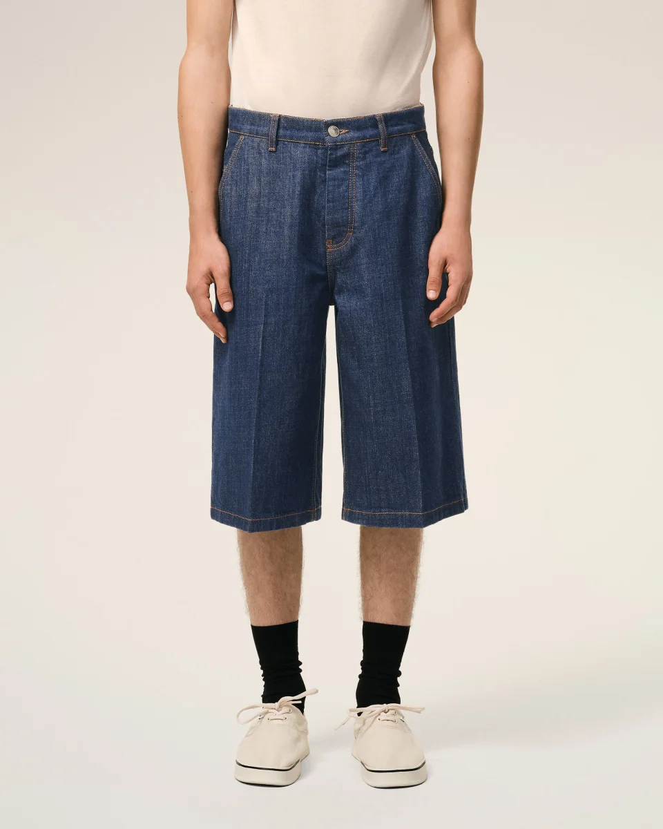 Bermuda loose en denim indigo brut.