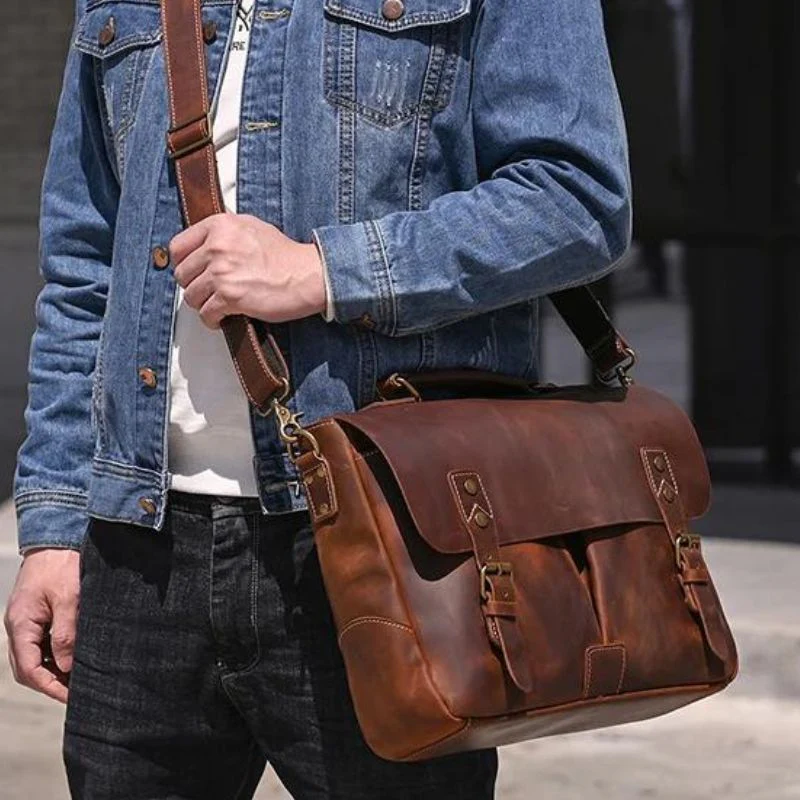 Besace pour homme en cuir Vintage : l’élégance au service de votre quotidien.