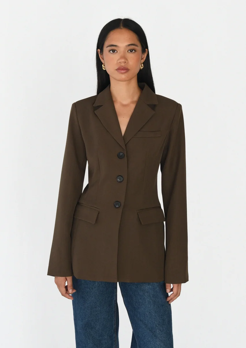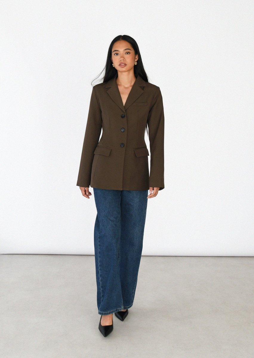 Élégant et intemporel, ce blazer cintré à revers crantés est la pièce essentielle pour un look structuré et raffiné.