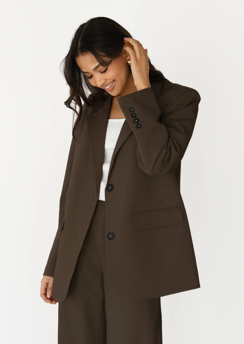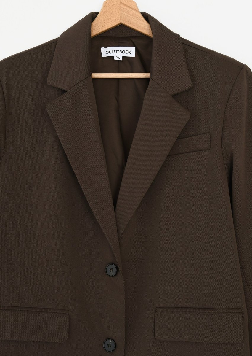 Élégant et intemporel, ce blazer droit à revers crantés est la pièce essentielle pour un look structuré et raffiné.