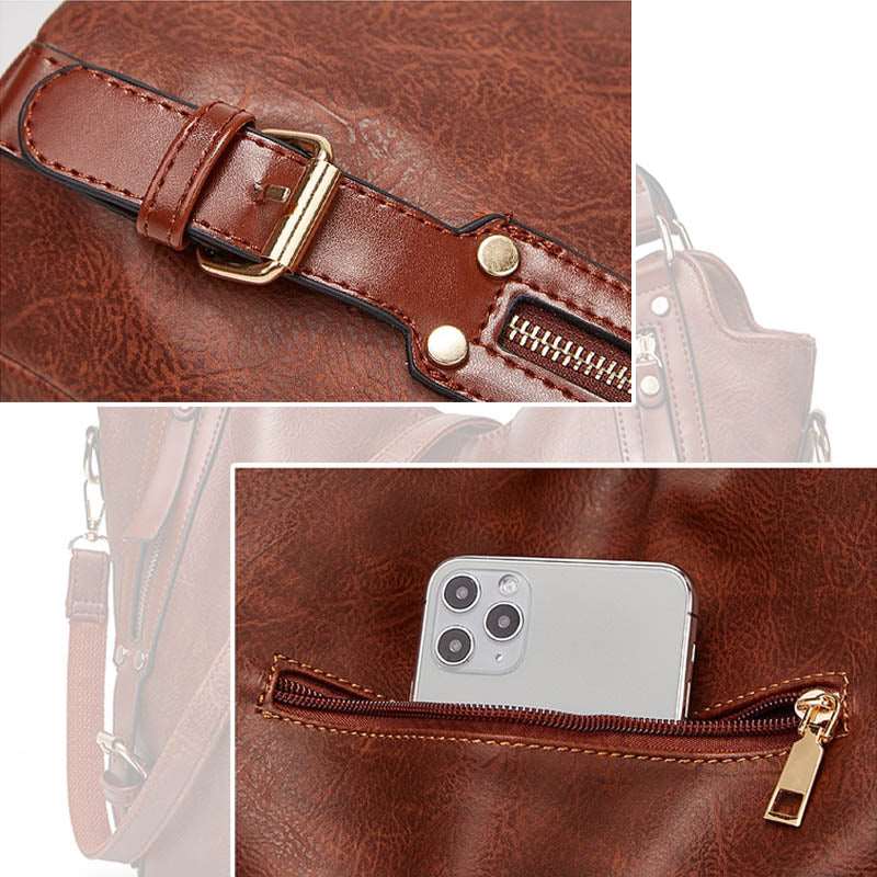 Le modèle parfait que vous souhaiterez porter à la main ou en bandoulière. Cette dernière comme beaucoup de nos sacs est d’ailleurs amovible grâce à un système de mousquetons. Totalement tendance avec sa forme évasée et ses fermetures stylées, ce sac à main bandoulière saura vous séduire pour une utilisation quotidienne.