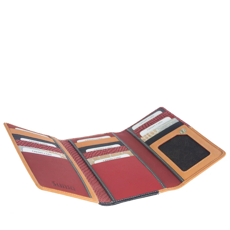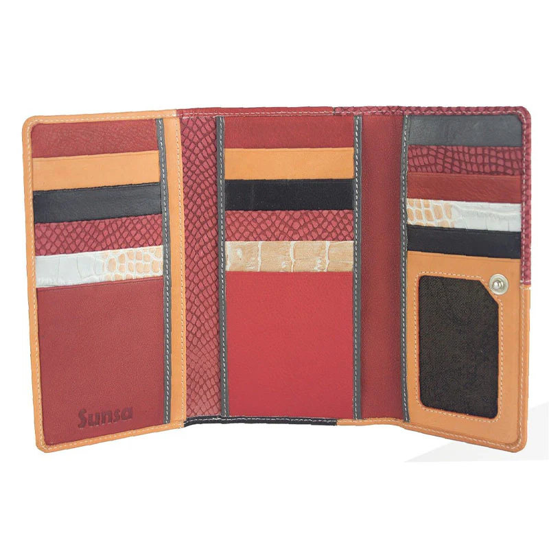 Mettez de la couleur dans votre sac ! Ce portefeuille femme original est réalisé avec soin en cuir recyclé et tissu par Sunsa. Spacieux et agréable à utiliser, il stocke toutes vos cartes et accepte votre monnaie.
