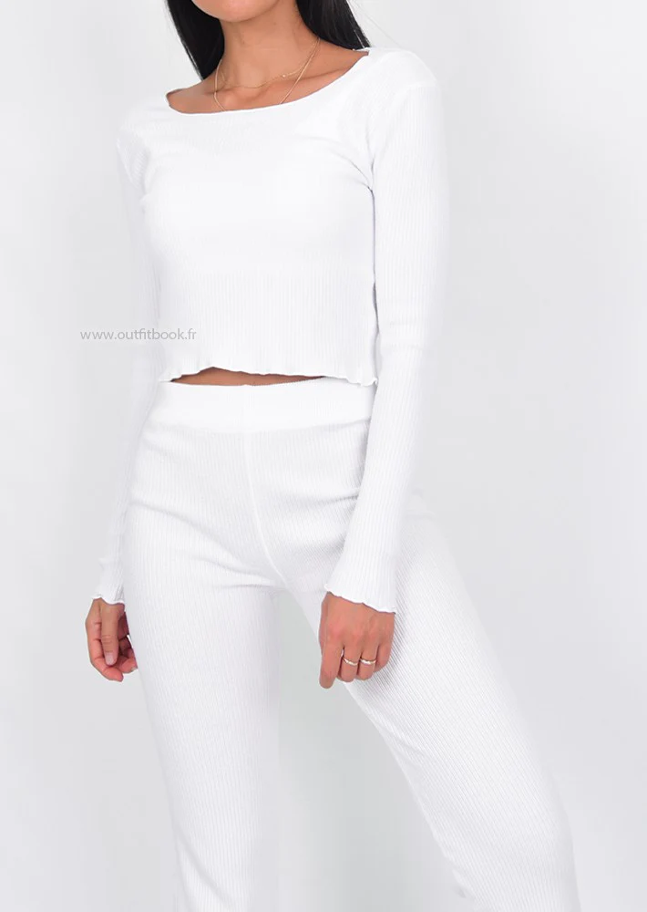 Ensemble pull & pantalon côtelé blanc – Pull côtelé blanc– Pantalon côtelé– Matière: maille fine côtelé DESCRIPTIF PRODUITMatière: 95% polyester 5% élasthanne TAILLELe modèle mesure 1m67 et porte l’article en taille S INSTRUCTIONSLavable en machine en suivant les instructions portées sur l’étiquette d’entretien