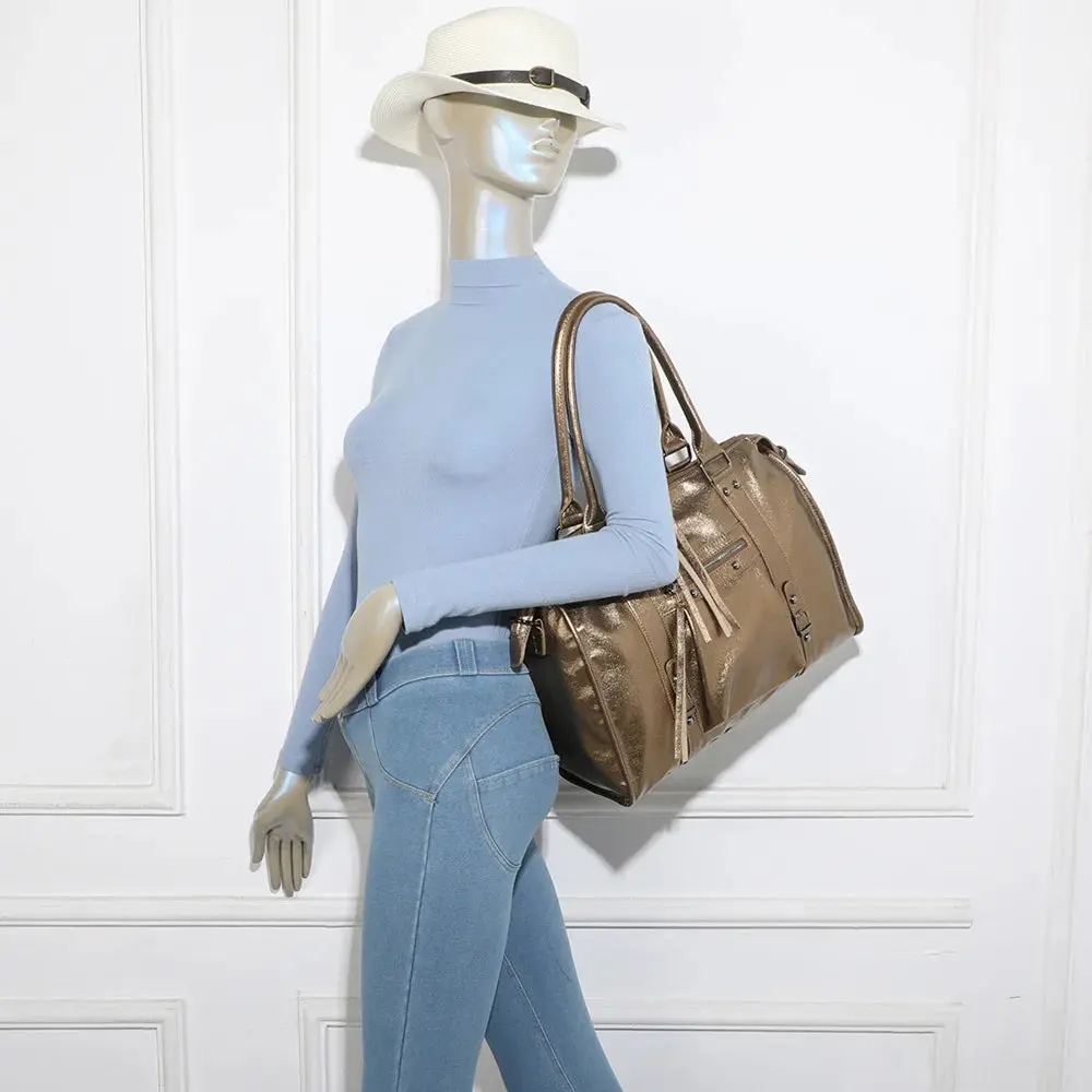 Idéal pour le travail, les cours ou les sorties en ville, ce sac bowling est entièrement doublé en polyester et pèse 900 g, alliant style, lumière et fonctionnalité dans un seul modèle ultra tendance.
