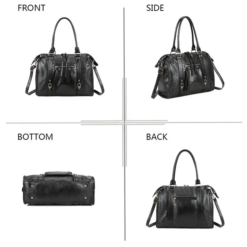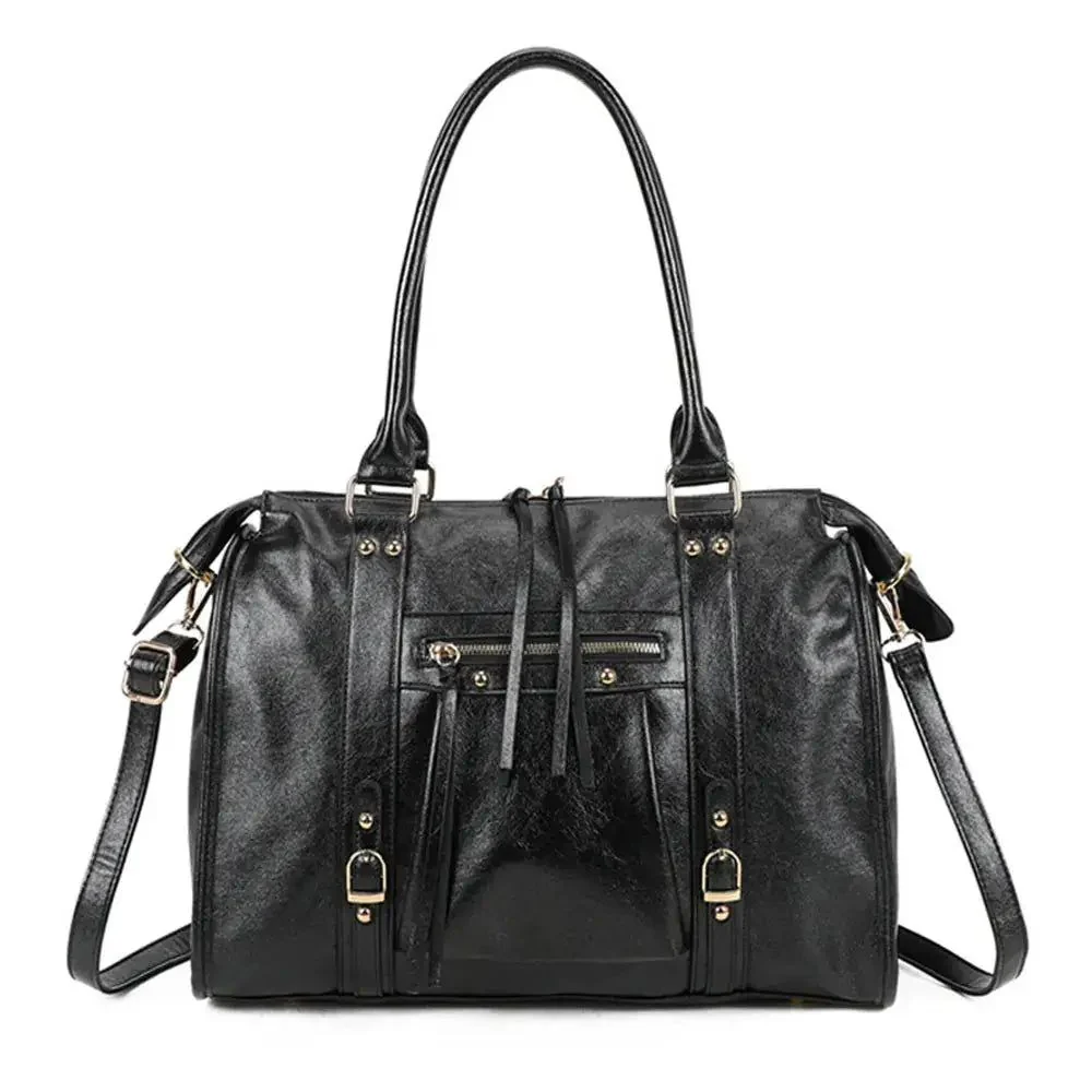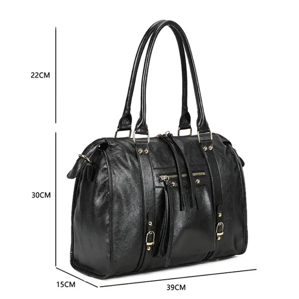 Idéal pour le travail, les cours ou les sorties en ville, ce sac bowling est entièrement doublé en polyester et pèse 900 g, alliant style, lumière et fonctionnalité dans un seul modèle ultra tendance.