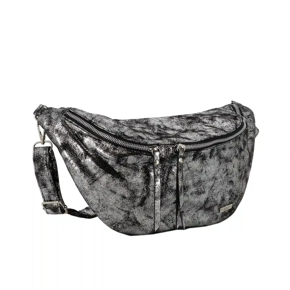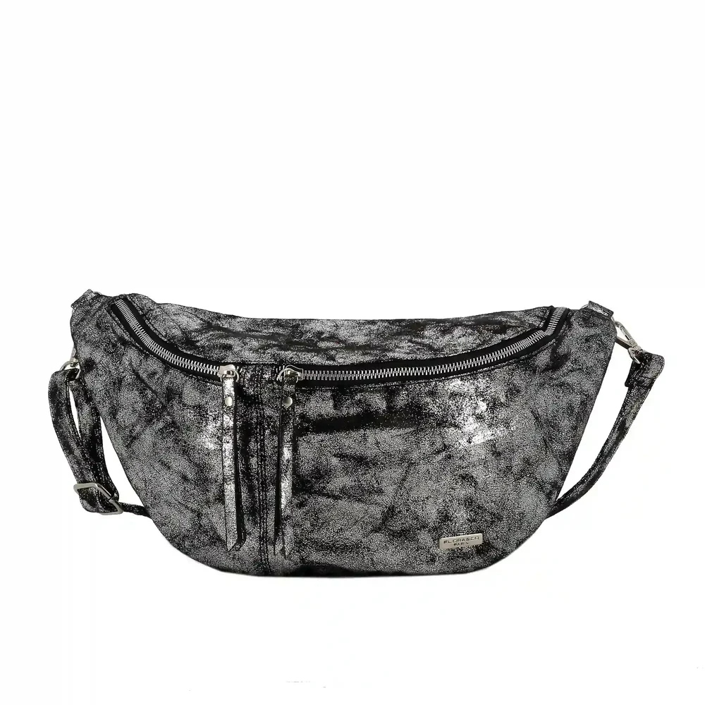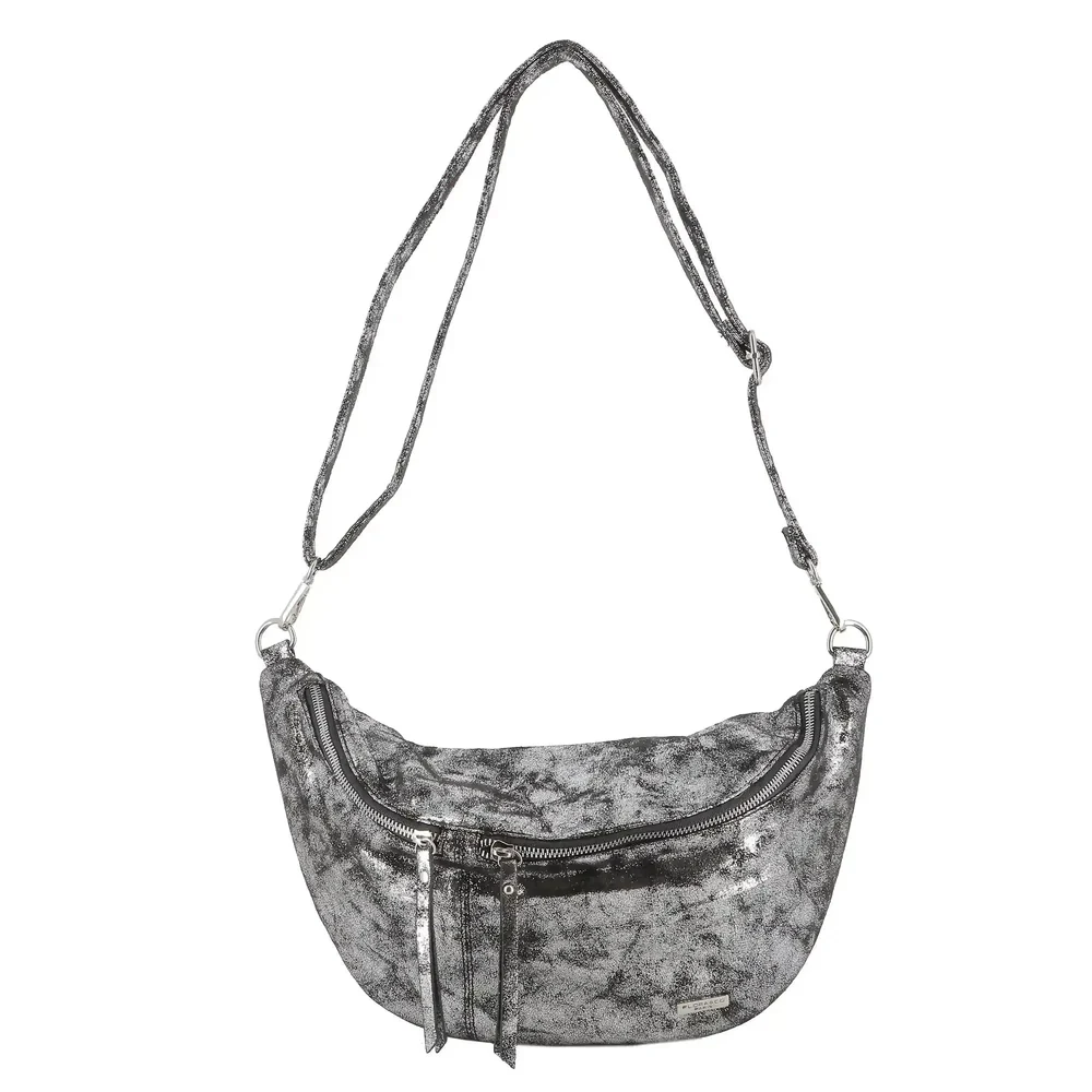 Grand sac banane femme daim irisé Gris Argent