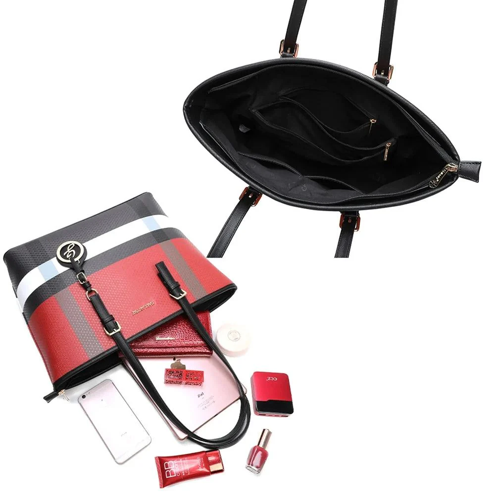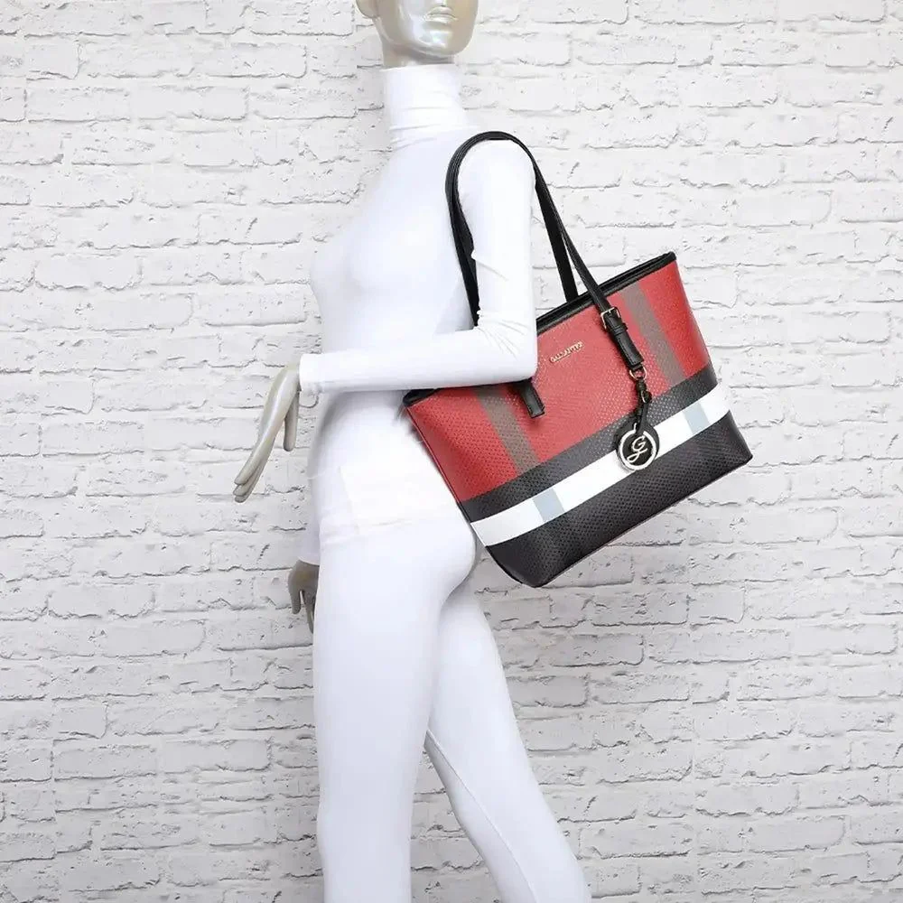 Ce sac à main au style rayé, chic et intemporel, vous séduira par son design élégant et sa matière en similicuir de qualité. Son fond semi-rigide, protégé par 4 picots en métal, offre une excellente stabilité tout en évitant d’abîmer le sac. Avec un volume intérieur spacieux, il peut contenir un ordinateur portable 15,6 pouces (32 x 24 cm), un livre, un cahier, une trousse de maquillage, une grande tablette, un Portefeuille, un classeur A4 et bien plus encore. À la main ou à l’épaule, ce cabas fourre-tout pratique et élégant vous accompagnera partout et conviendra parfaitement à toutes vos tenues, qu’elles soient décontractées ou professionnelles. Idéal pour le quotidien, que ce soit en ville, au travail, au lycée, à l’université, en shopping ou au bureau.