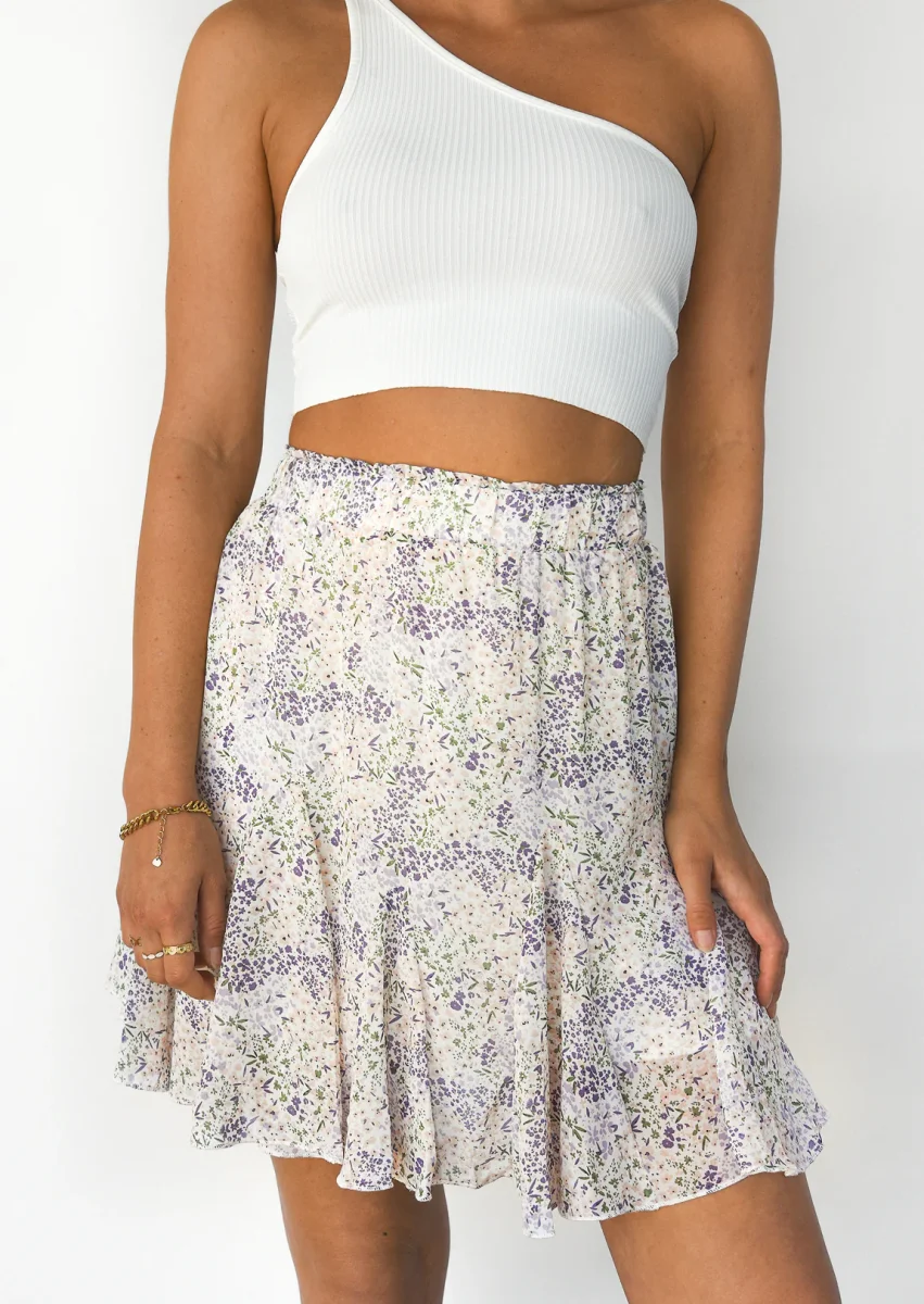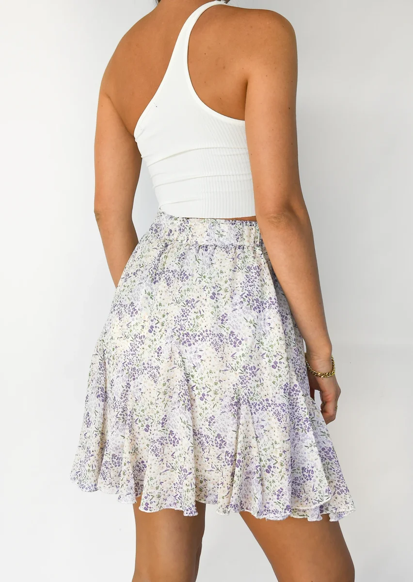Soyez le premier à laisser votre avis sur “Jupe fleurie à volants lilas”