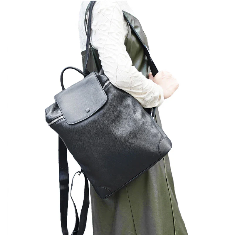 Ce sac à dos femme cuir noir bénéficie d’une jolie réalisation : à la fois élégant et minimaliste. On apprécie son volume de chargement et sa large ouverture par le haut. De quoi y placer de nombreuses affaires de travail avec quelques habits au besoin.
