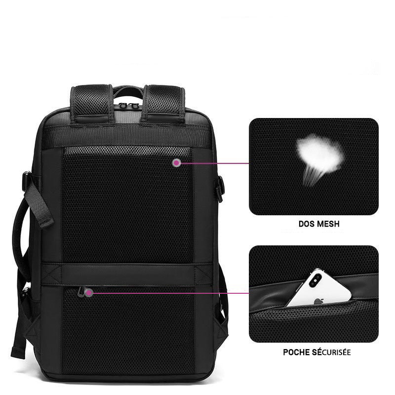 C’est un sac à dos extensible premium qui s’adapte à votre besoin et pourra facilement servir de bagage cabine. La sobriété de son design en fait un sac de voyage unisexe doté d’une multitude de rangements associés à une qualité de fabrication irréprochable.