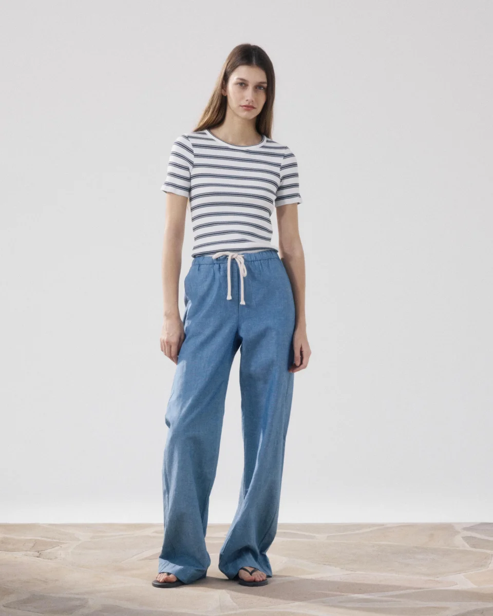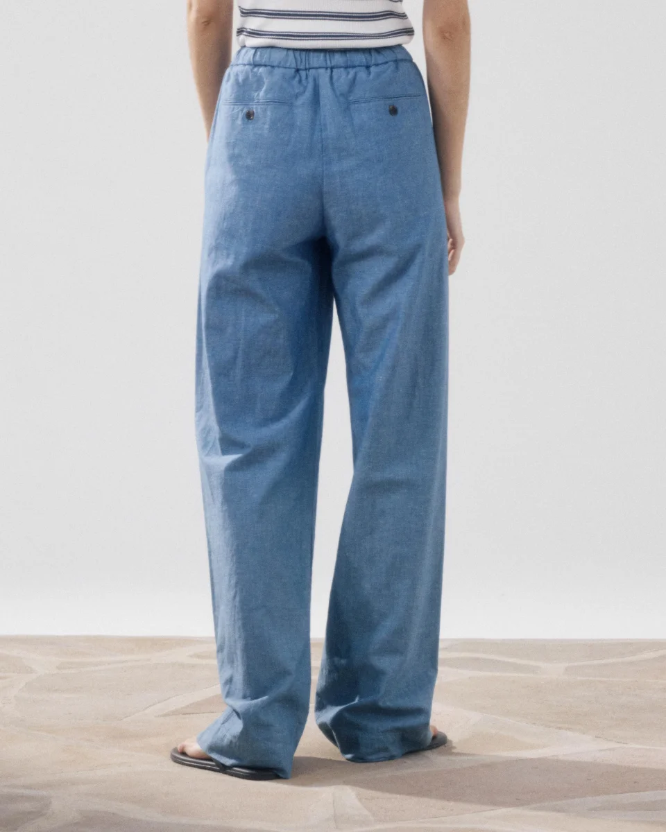 Pantalon Femme en Coton & Lin Bleu Denim Pulam
