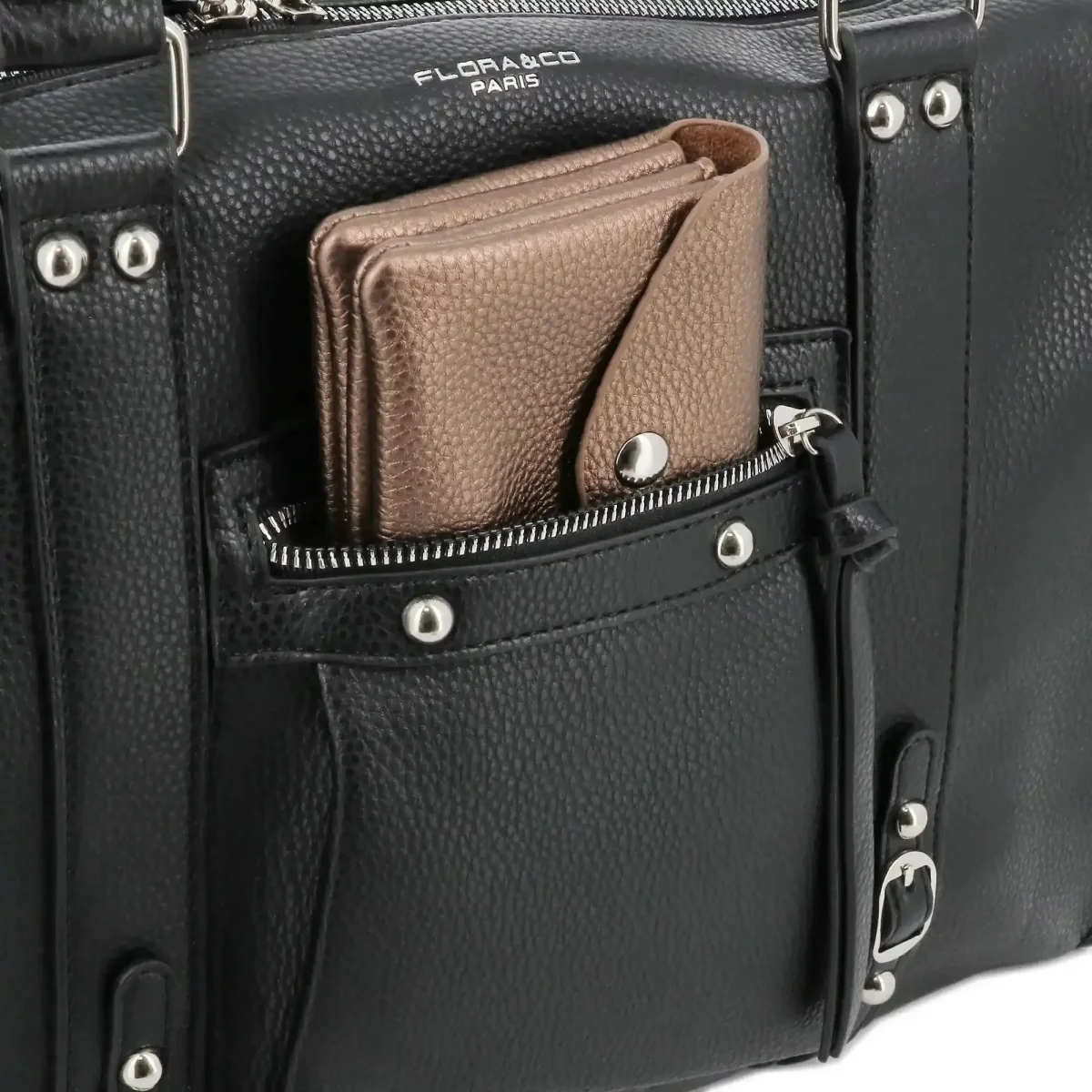 R: Ce sac cabas est conçu pour une organisation pratique ! Vous pouvez ranger votre smartphone, votre portefeuille, vos clés, et même quelques petits accessoires dans les différentes poches. La poche extérieure zippée est idéale pour vos objets plus précieux et vous permet de garder vos affaires à portée de main.