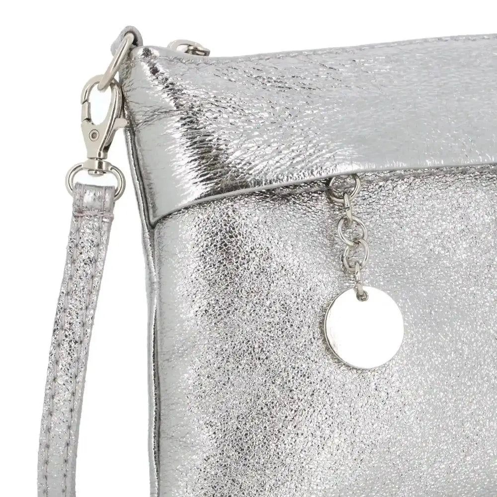 Pochette bandoulière cuir irisé lanière Argent