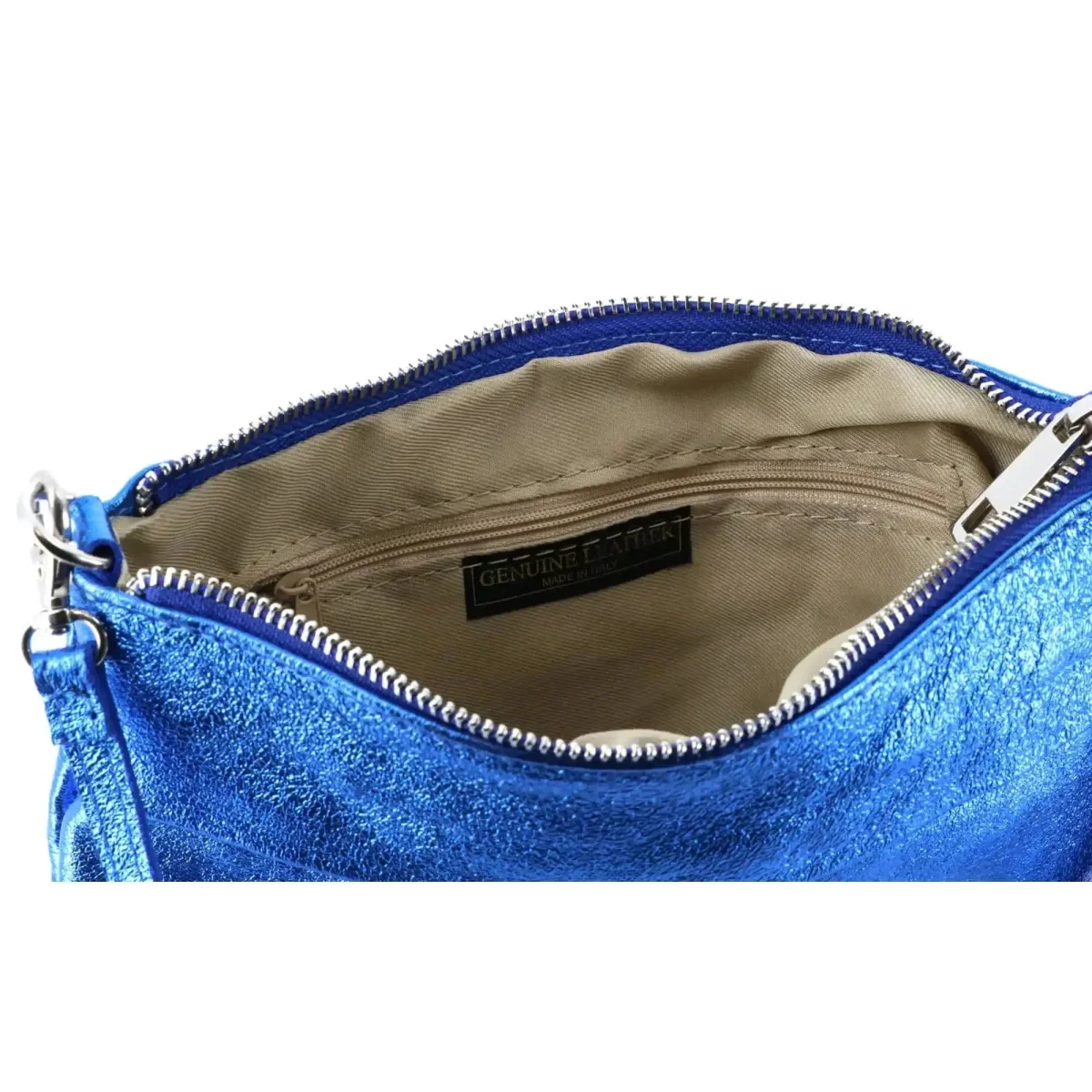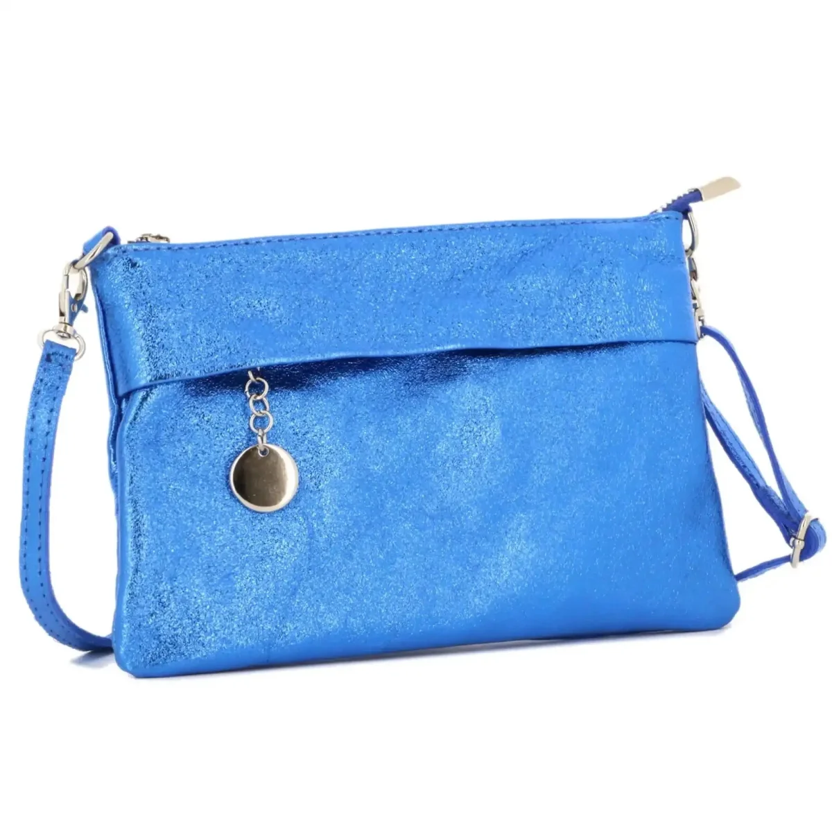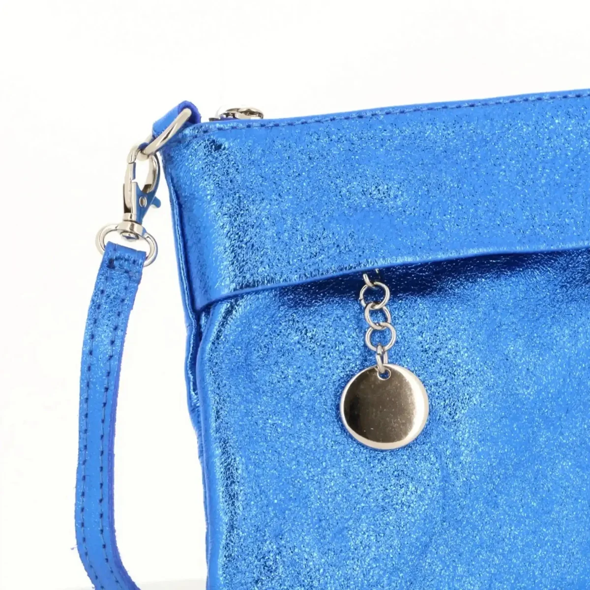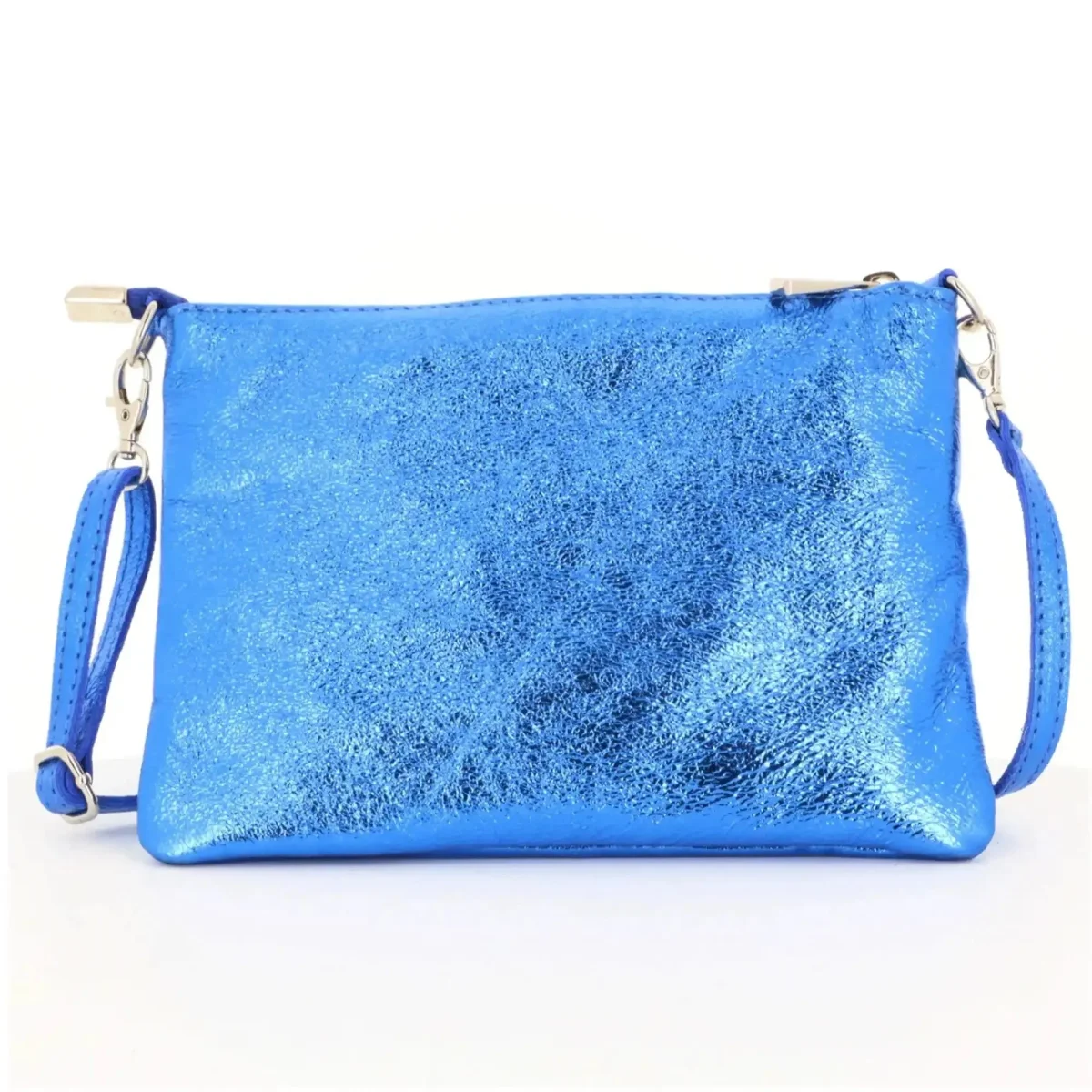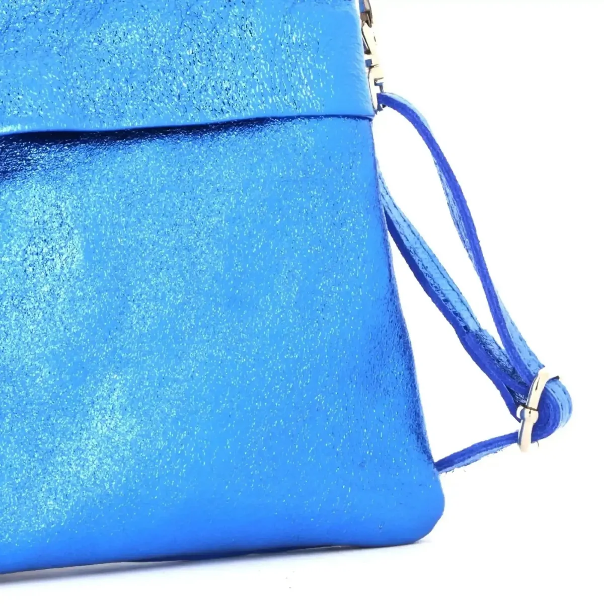 Pochette bandoulière cuir irisé lanière Bleu