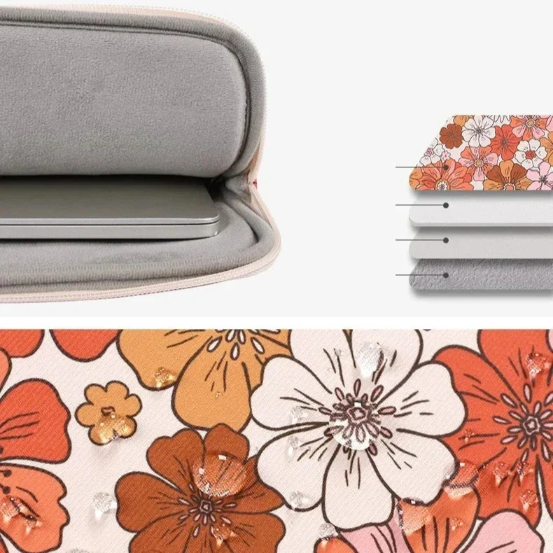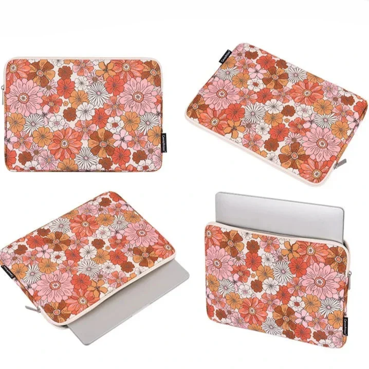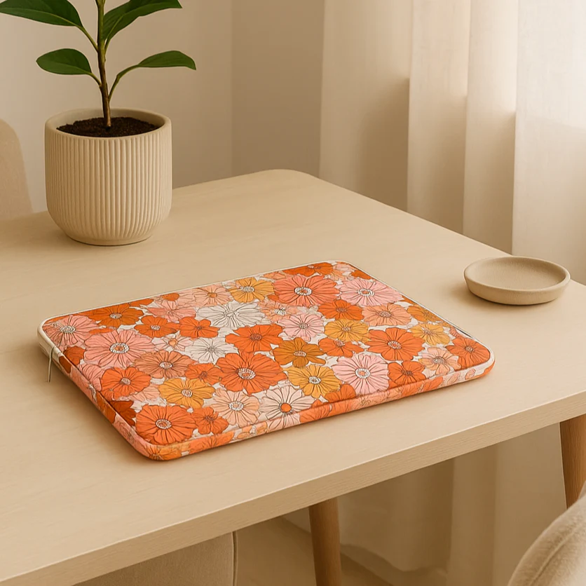 Protégez votre ordinateur avec style grâce à cette housse en tissu style Liberty, ornée de motifs floraux tendance dans des tons orange et rose. Conçue pour séduire par son charme intemporel, cette housse combine élégance et fonctionnalité.