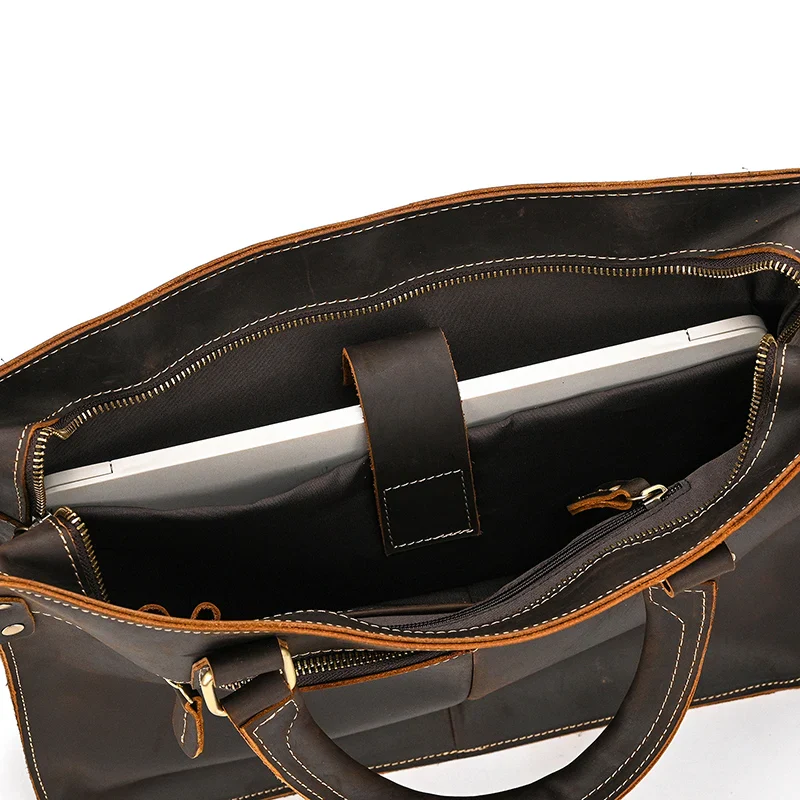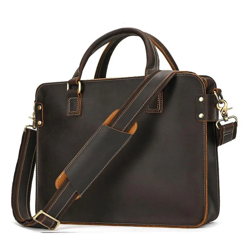 Ce porte-document se distingue par son design intemporel et sa finition soignée. La teinte marron classique confère une allure sophistiquée, idéale pour les réunions d’affaires, les déplacements professionnels ou les journées de travail au bureau.