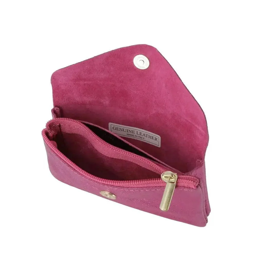 Accessoire en cuir véritable « Made in Italy« , pratique et élégant. Compact, il offre 2 compartiments pour cartes, espèces et petits objets. Fermeture zip et bouton-pression.