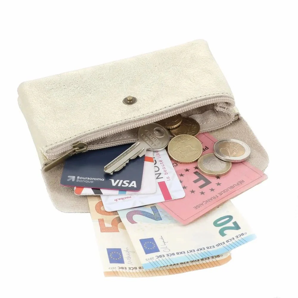 Accessoire en cuir véritable « Made in Italy », pratique et élégant. Compact, il offre 2 compartiments pour cartes, espèces et petits objets. Fermeture zip et bouton-pression.