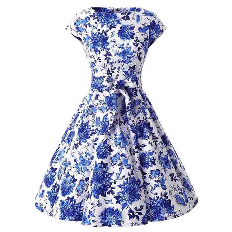 Découvrez cette magnifique robe à fleurs blanches et bleues dans un style tapisserie vintage. Enfilez cette tenue pin-up et devenez la reine de la soirée ! Simple et agréable à porter, elle se combine très bien avec un collant couleur chair ou blanc.