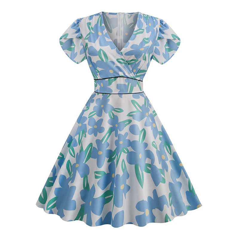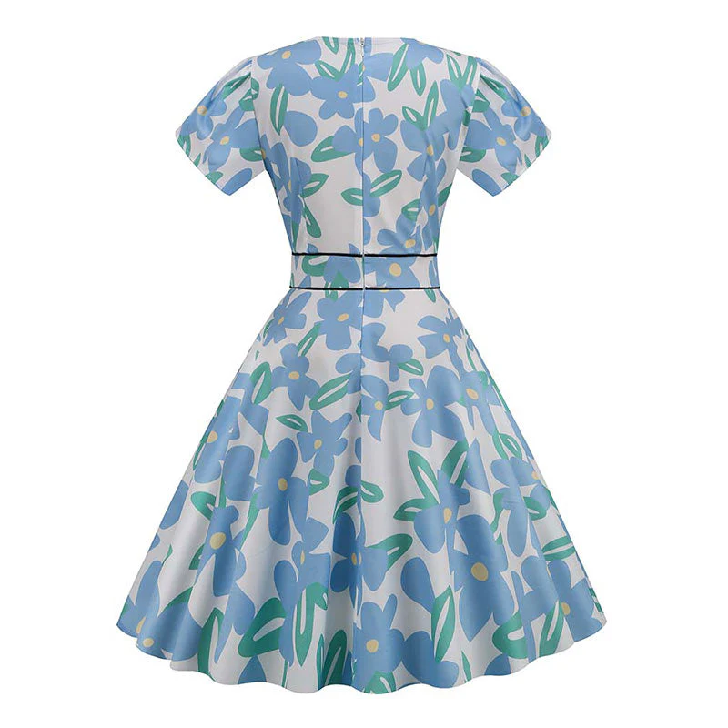 Découvrez la jolie Robe Fleurs Bleues Année 50