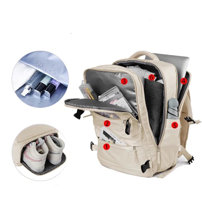 Mais ce sac ne se limite pas à la protection de votre ordinateur. Il est doté d’un large éventail de poches intelligemment conçues pour organiser vos affaires personnelles. Vous serez agréablement surpris par des fonctionnalités uniques telles qu’une poche étanche pour votre maquillage, ainsi qu’une poche dédiée pour vos chaussures.