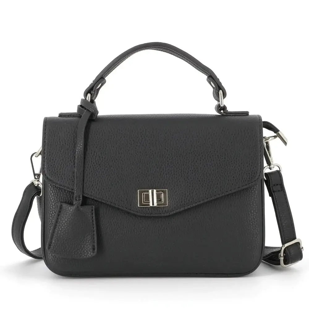 Design moderne : Sac à main avec poignée courte et bandoulière amovible et réglable. Fermeture tourniquet en métal, chic et pratique.
