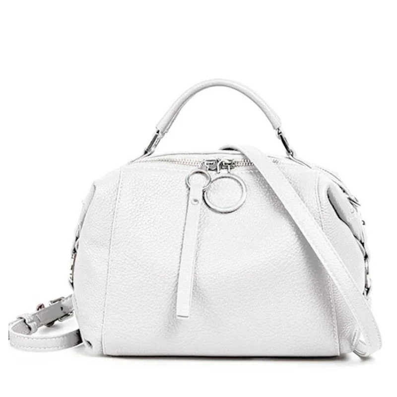Ce sac à main en cuir véritable d’un blanc immaculé affiche une texture riche et une construction robuste. Il témoigne d’un savoir-faire artisanal sans compromis. Les détails soignés, comme les coutures précises et les ferrures polies, reflètent une attention particulière portée à la qualité et à la durabilité.