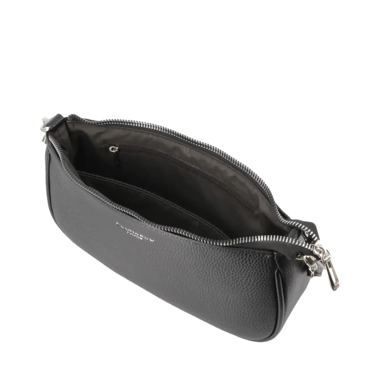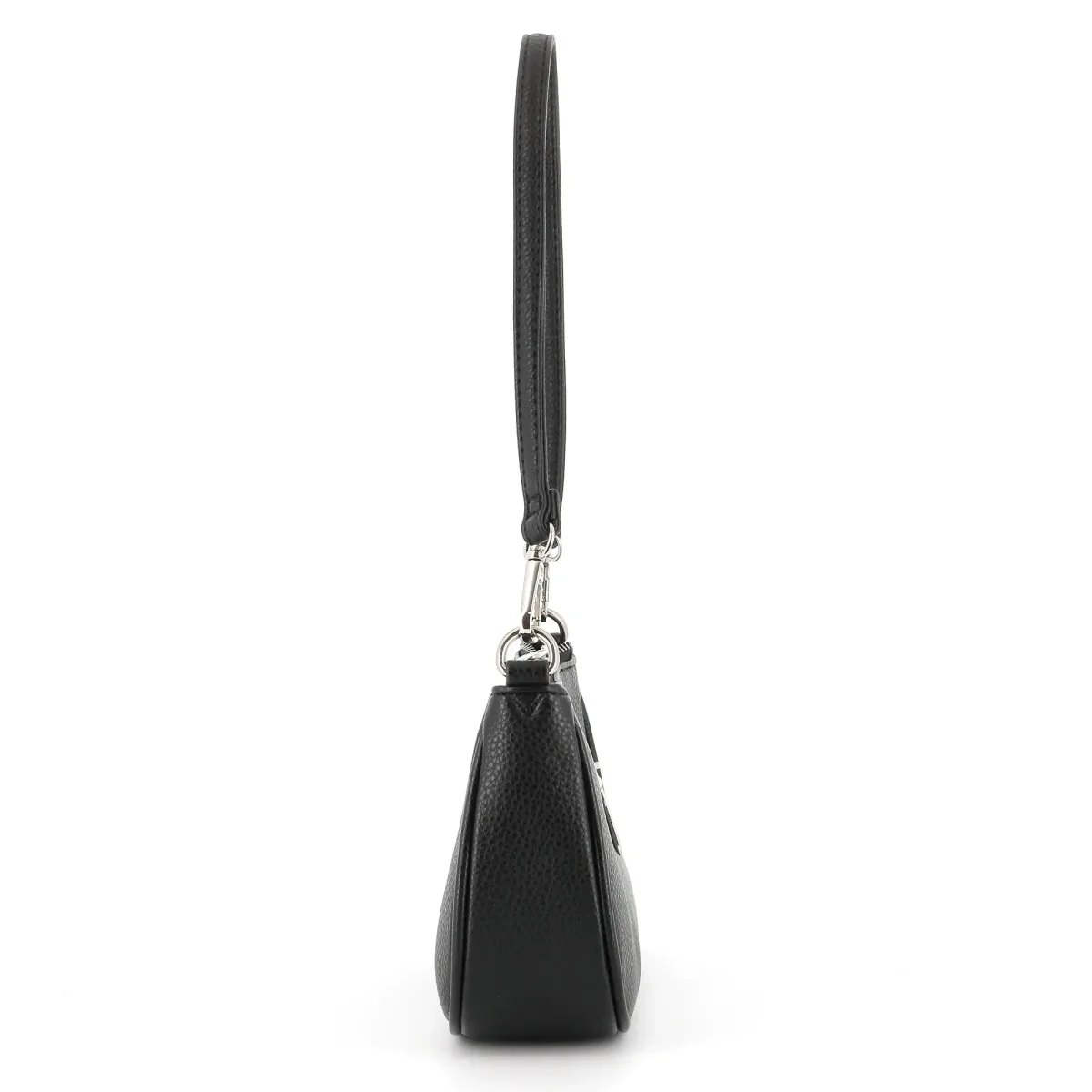 Ce sac à bandoulière en cuir PU texturé allie élégance et praticité avec son design de forme baguette compact (25 x 14 x 6 cm). Il comprend deux bandoulières interchangeables : une en cuir PU et une en tissu imprimé. Son intérieur spacieux avec une poche zippée permet d’organiser vos essentiels. La fermeture éclair assure la sécurité, tandis que les détails métalliques argentés et le logo discret ajoutent une touche raffinée, idéale pour un usage quotidien ou des occasions spéciales.