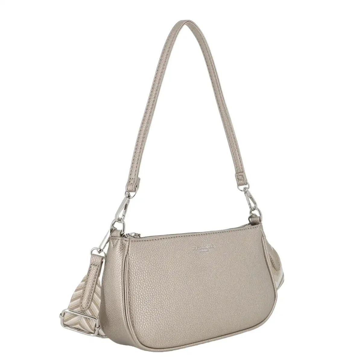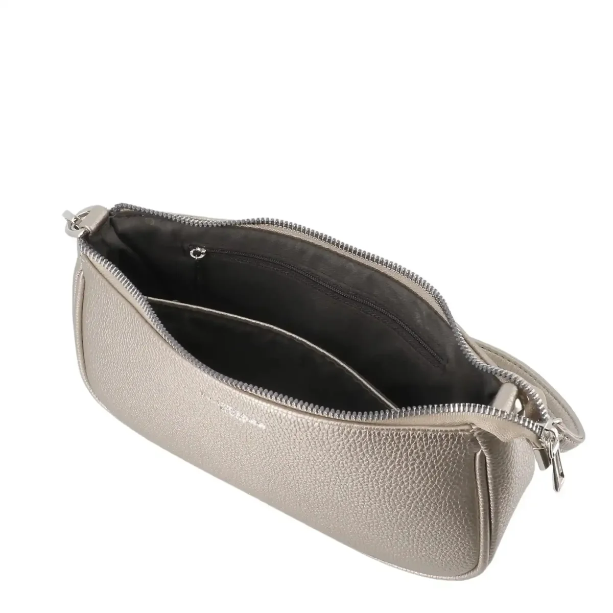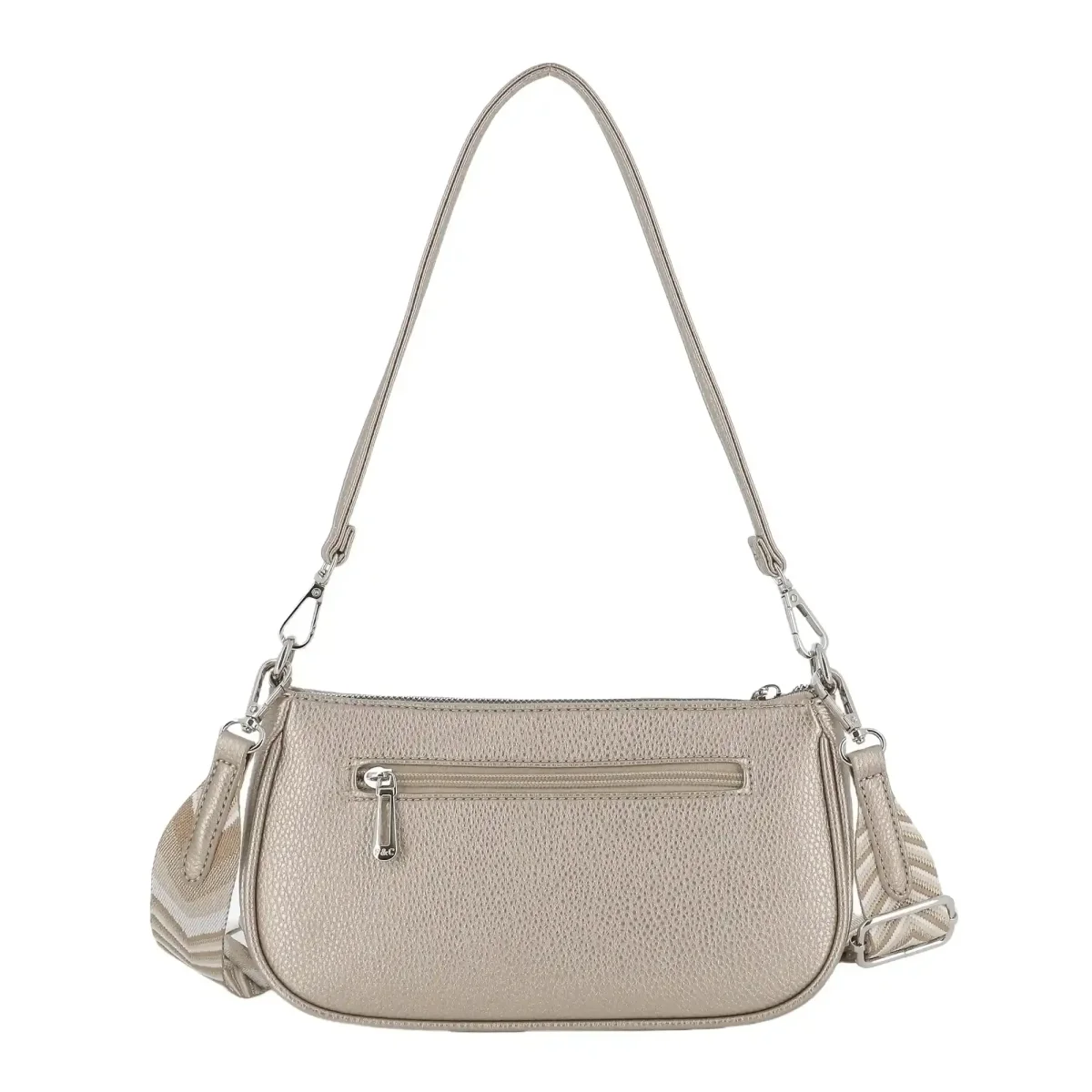 Ce sac à bandoulière en cuir PU texturé allie élégance et praticité avec son design de forme baguette compact (25 x 14 x 6 cm). Il comprend deux bandoulières interchangeables : une en cuir PU et une en tissu imprimé. Son intérieur spacieux avec une poche zippée permet d’organiser vos essentiels. La fermeture éclair assure la sécurité, tandis que les détails métalliques argentés et le logo discret ajoutent une touche raffinée, idéale pour un usage quotidien ou des occasions spéciales.