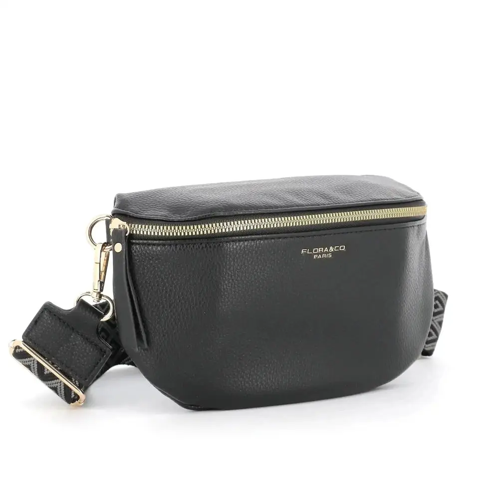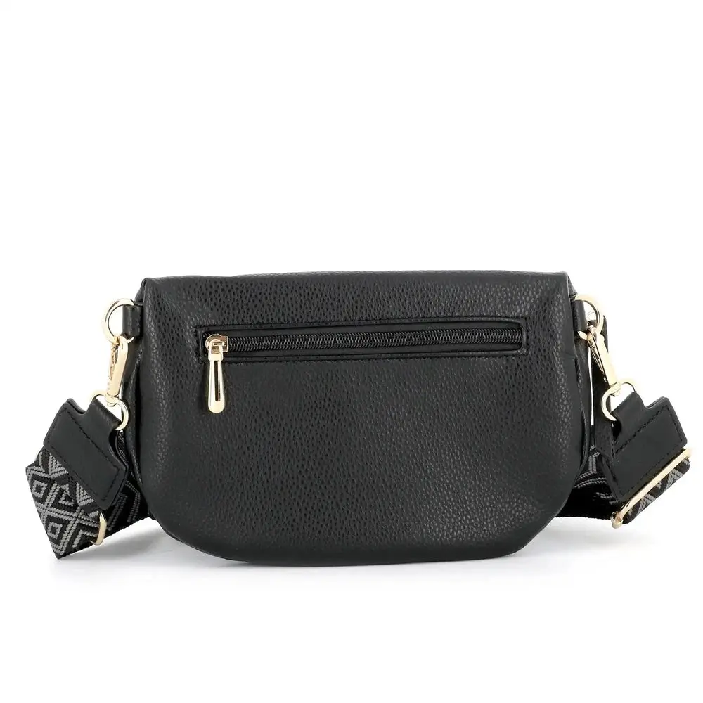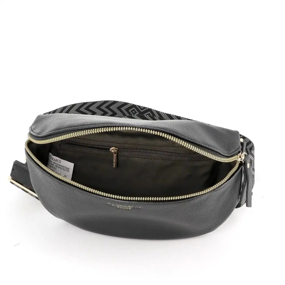 Sac banane femme brodée pu cuir grainé noir