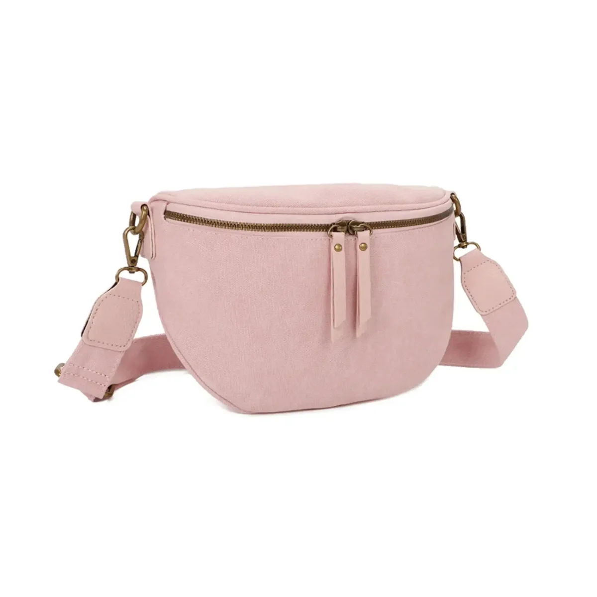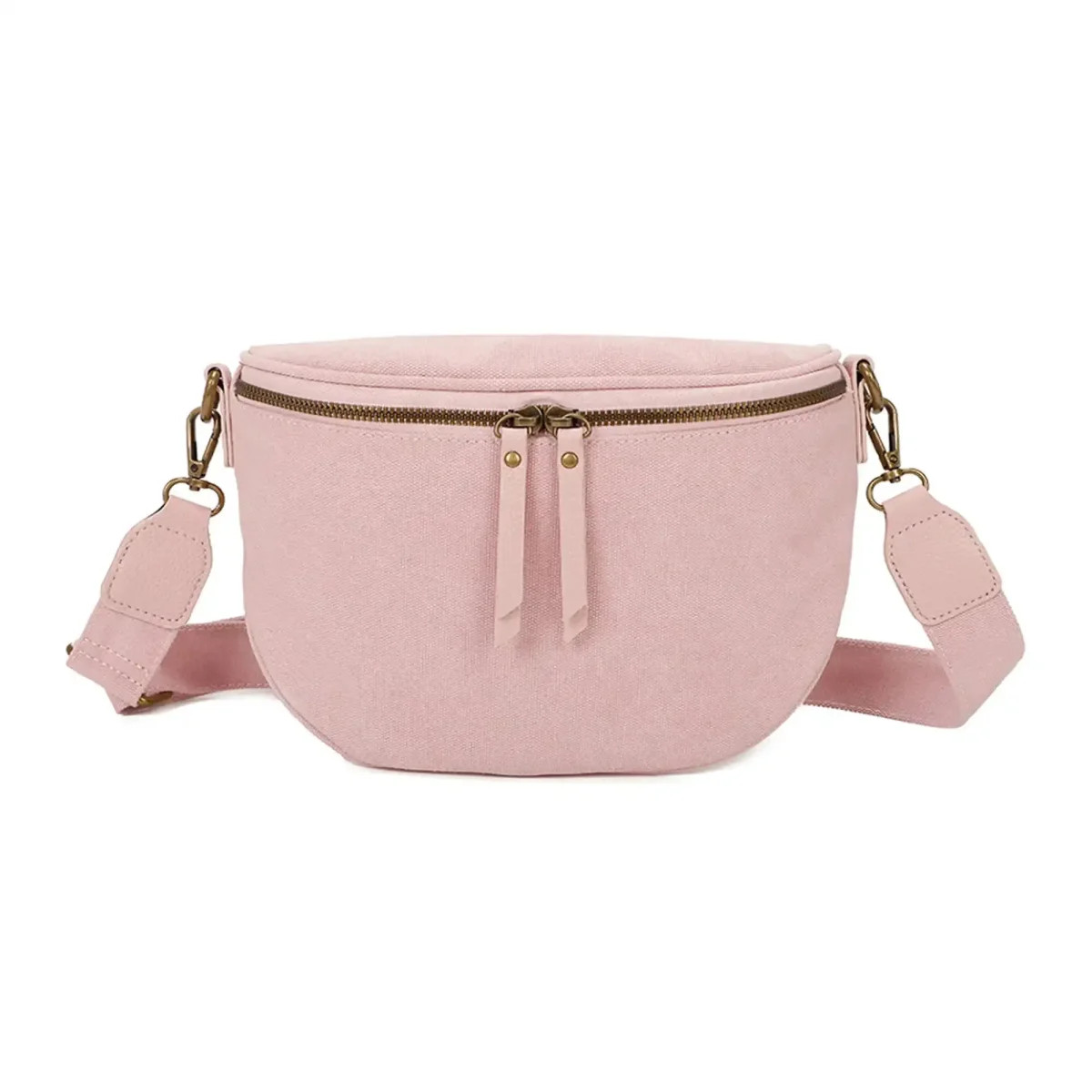 Alliez style et praticité avec ce sac banane tendance en canvas bleu clair. Son design arrondi et spacieux permet de transporter vos essentiels avec élégance, tandis que sa fermeture éclair sur le dessus assure une sécurité optimale.