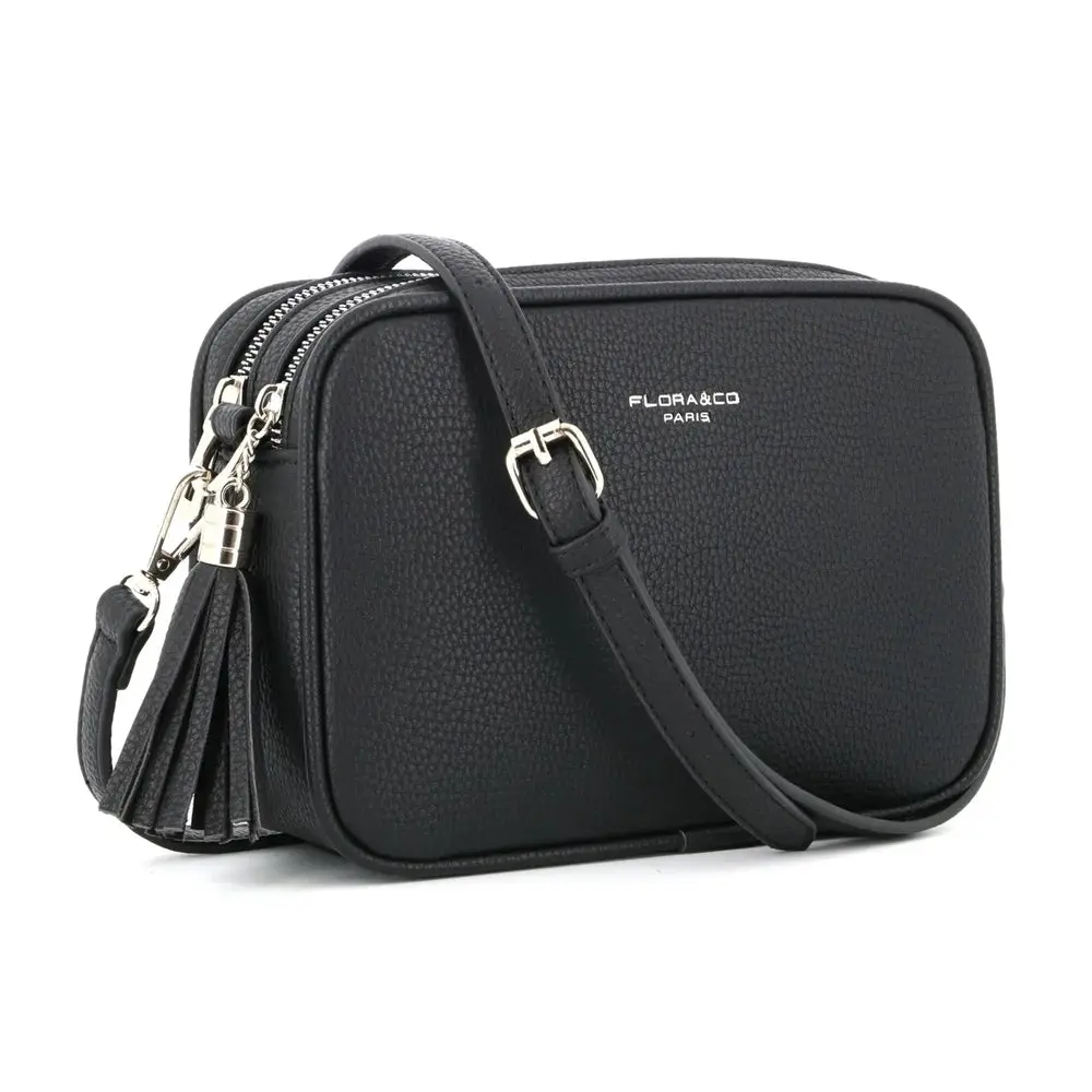 Le sac bandoulière caméra Flora & Co allie élégance et fonctionnalité. Confectionné en similicuir grainé de haute qualité, il présente un design rectangulaire moderne avec des détails de franges raffinés. Ses deux compartiments principaux zippés offrent un espace de rangement optimal pour vos essentiels. Grâce à sa bandoulière réglable, portez-le confortablement à l’épaule ou en travers du corps. Idéal pour accompagner vos tenues de ville ou vos sorties décontractées.