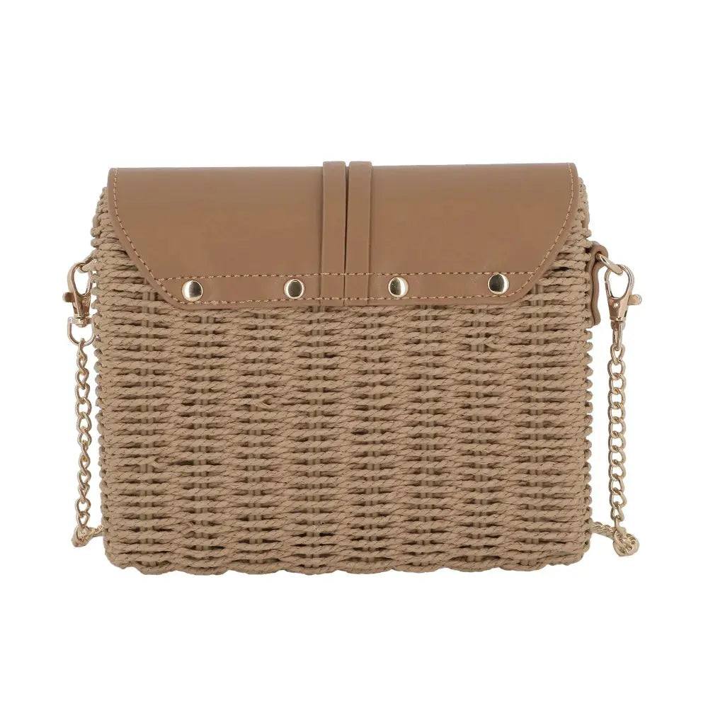 Sa bandoulière en chaîne dorée avec renfort en simili cuir permet un porté confort sur l’épaule ou à croisé, offrant praticité et style. Son compartiment principal spacieux permet de transporter aisément l’essentiel : téléphone, portefeuille, clés et petits accessoires. Une poche intérieure offre un rangement supplémentaire pour plus d’organisation. Avec son format compact (20 x 17 x 8 cm) et fonctionnel, ce sac est le compagnon idéal pour une touche chic et estivale.