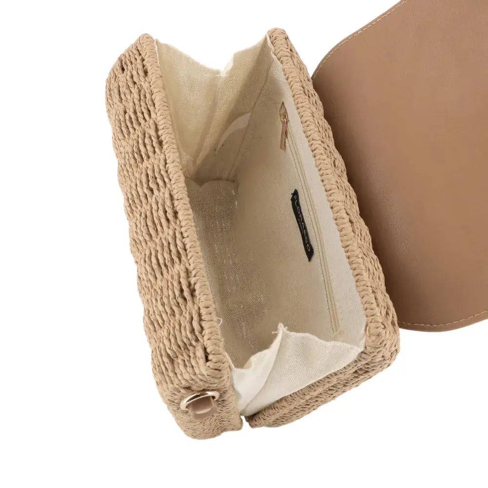 Ce sac bandoulière incarne l’équilibre parfait entre élégance et esprit bohème. Conçu avec une base en paille tressée de haute qualité et un rabat en simili cuir raffiné, il offre un design unique qui allie modernité et naturel.
