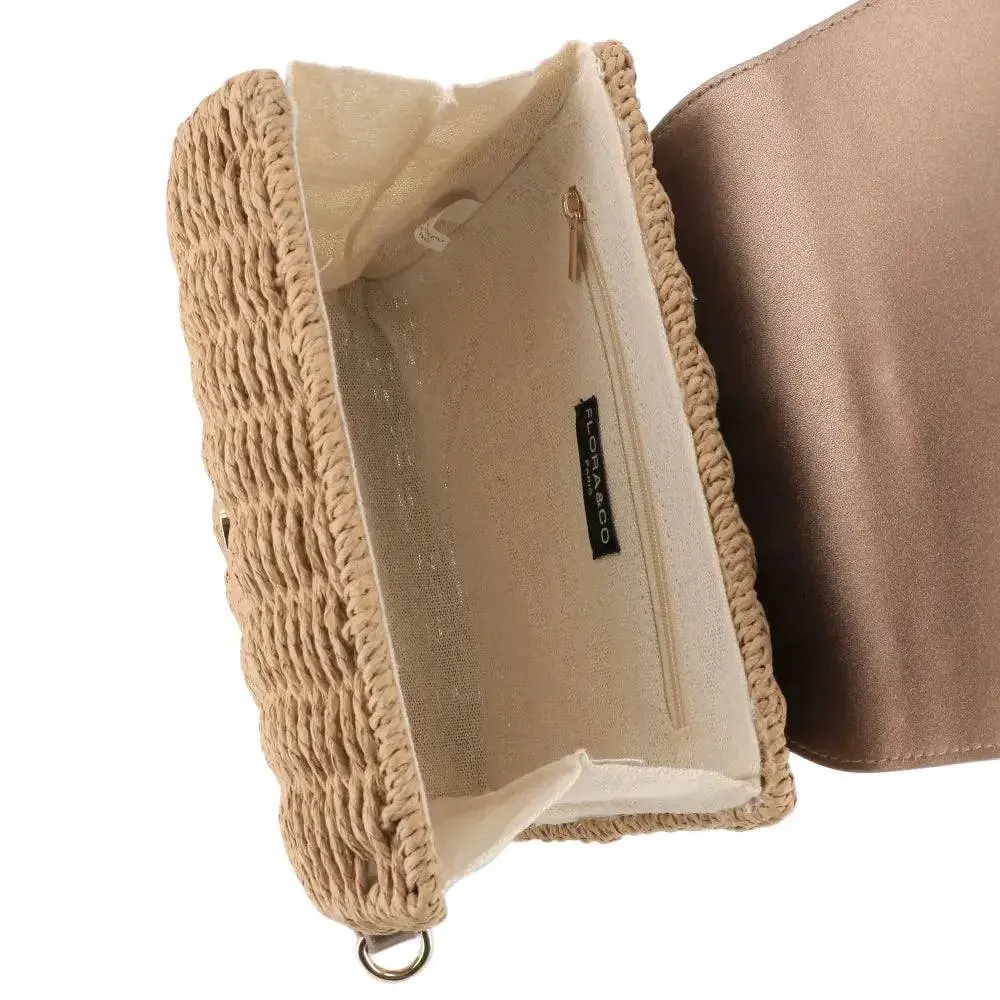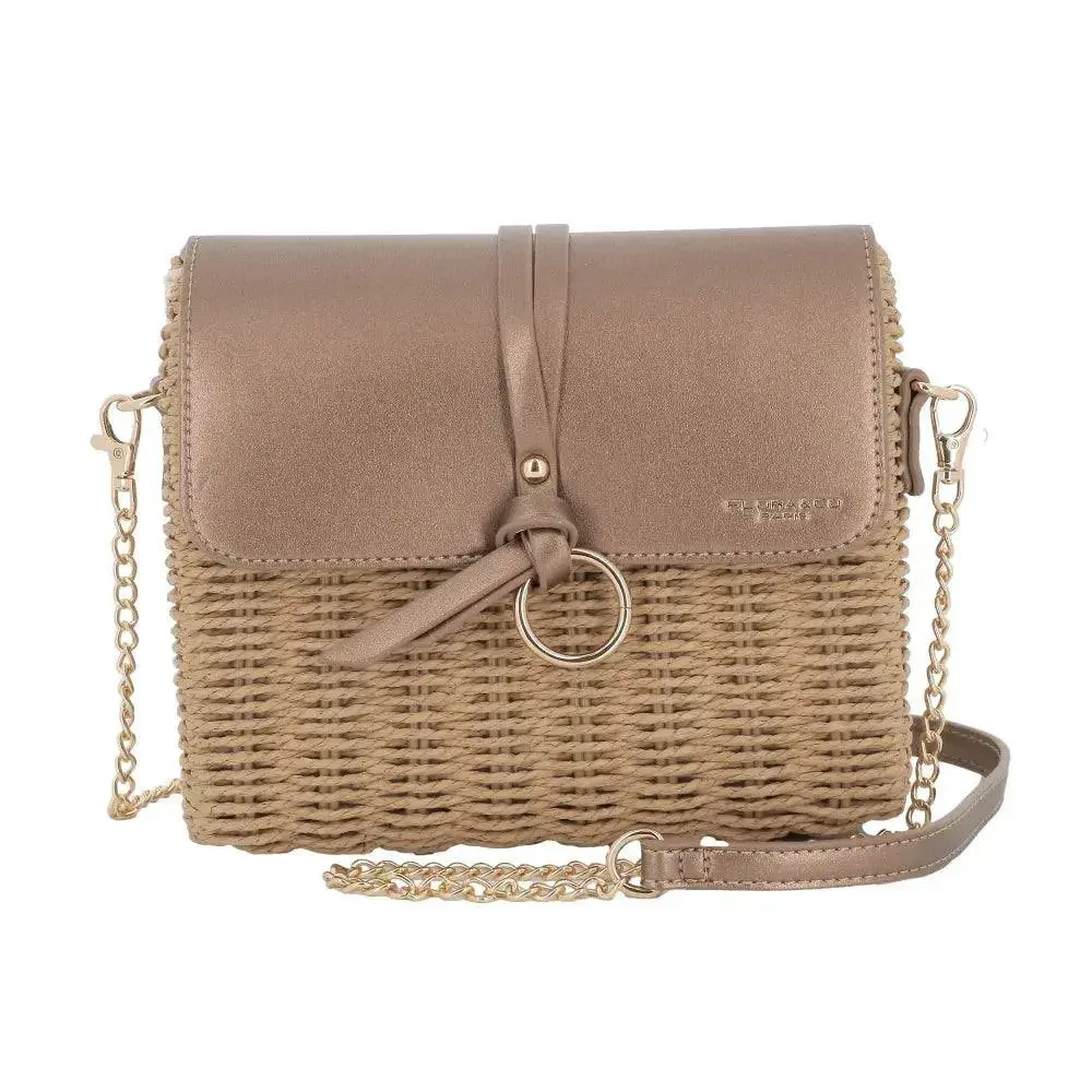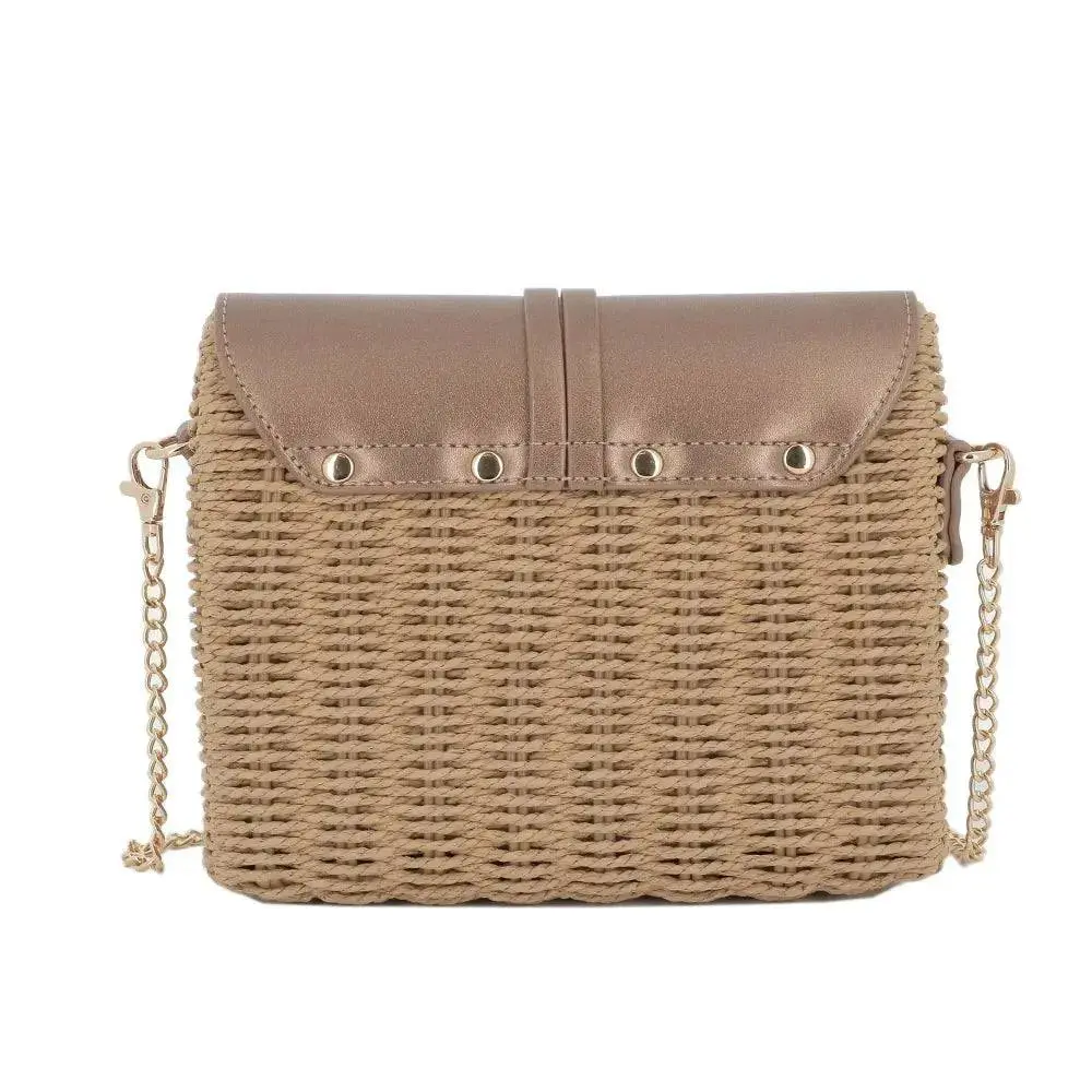 Sac bandoulière chaîne en paille Marron Métal