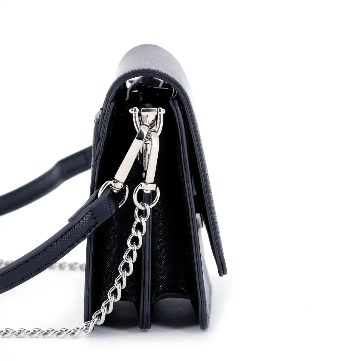 Ce petit sac bandoulière allie élégance et simplicité. Son design épuré est rehaussé par une chaîne et une bandoulière fine, permettant de créer différents looks stylés. Le logo discret sur le rabat ajoute une touche de sophistication. Confectionné en cuir synthétique de haute qualité, il est durable et chic, idéal pour un usage quotidien ou des occasions spéciales.