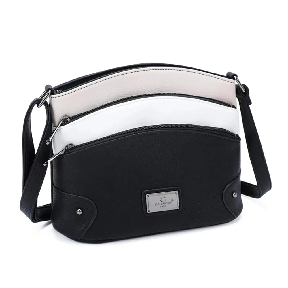 - Rangements : 3 compartiments principales pour portefeuille, cosmétique, clés, etc.