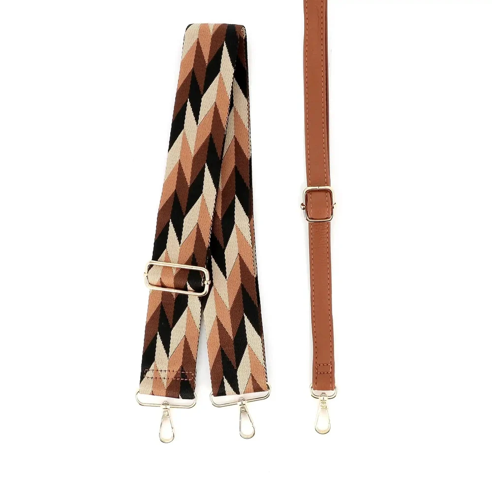 • Bandoulières : Deux bandoulières réglables et amovibles : une à motif géométrique et une standard.