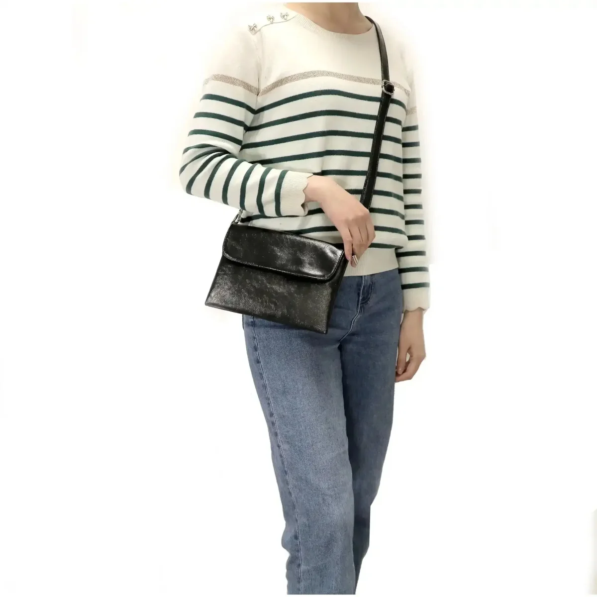 Design moderne : pochette rectangulaire et plate, mignonne et pratique. Changez de style grâce aux deux bandoulières de différentes longueurs. Fermeture à rabat avec zip glissière pour plus de sécurité.