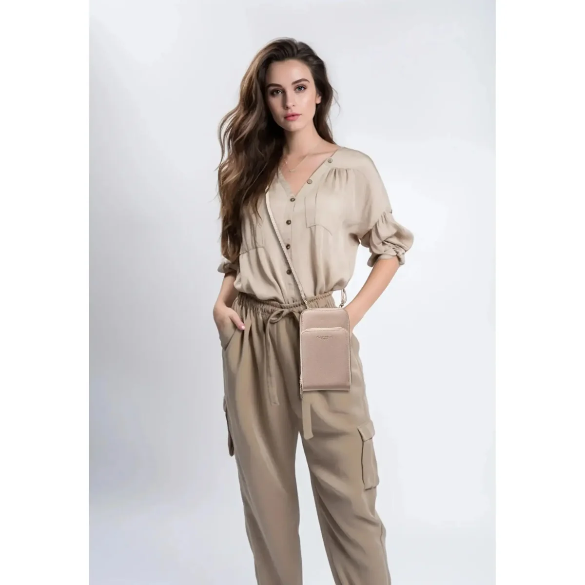 Sac bandoulière pochette téléphone 6.7 pouces Taupe Clair