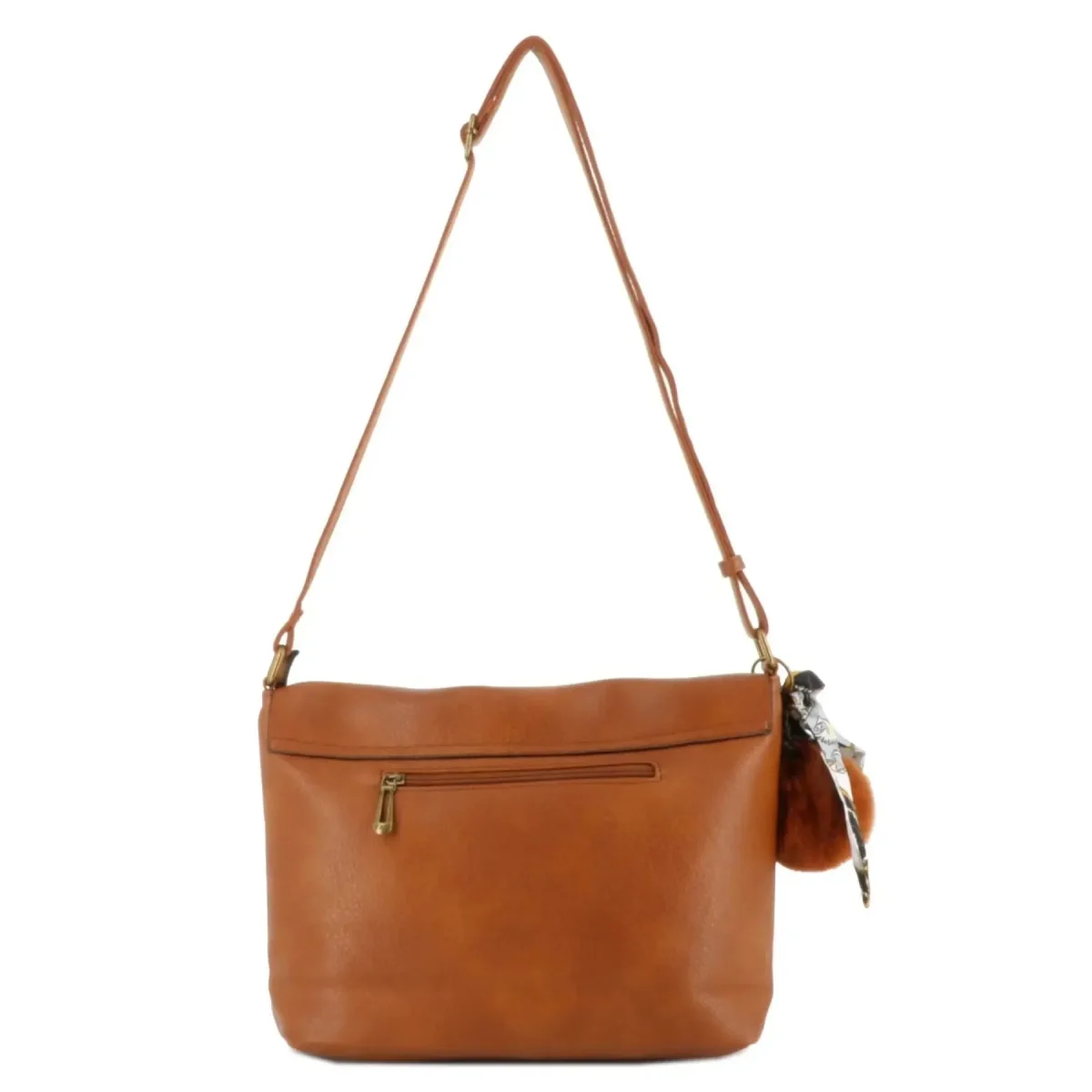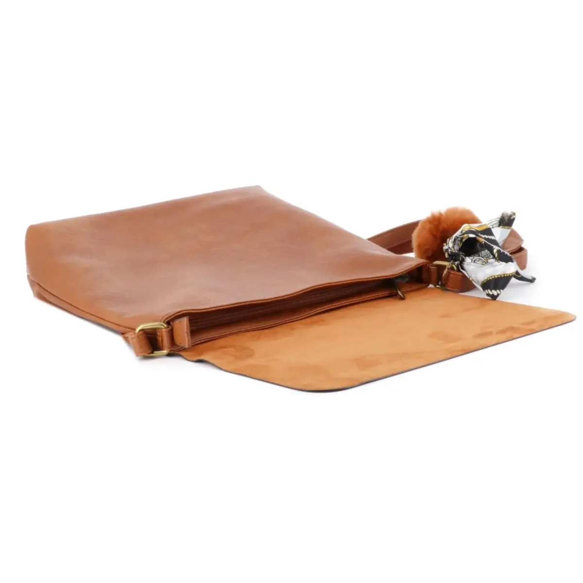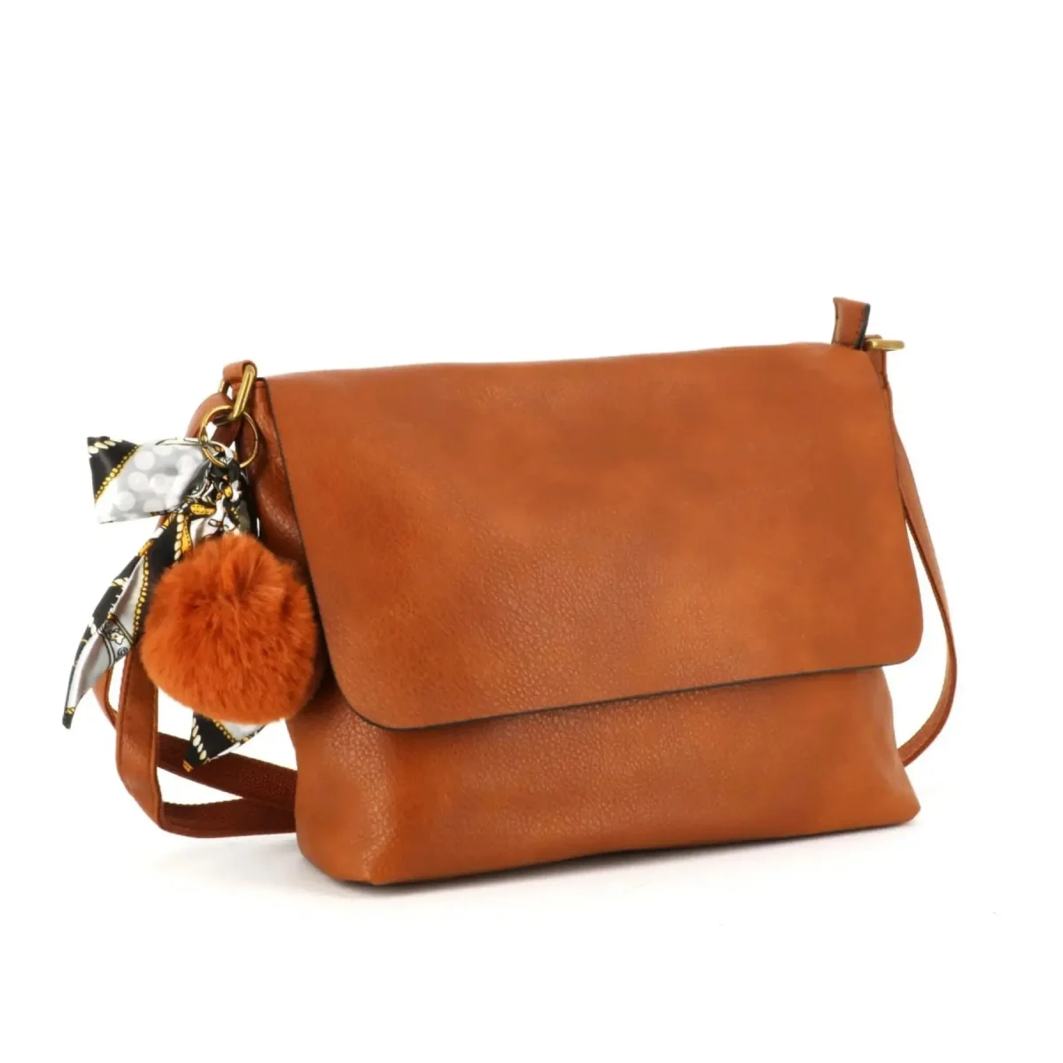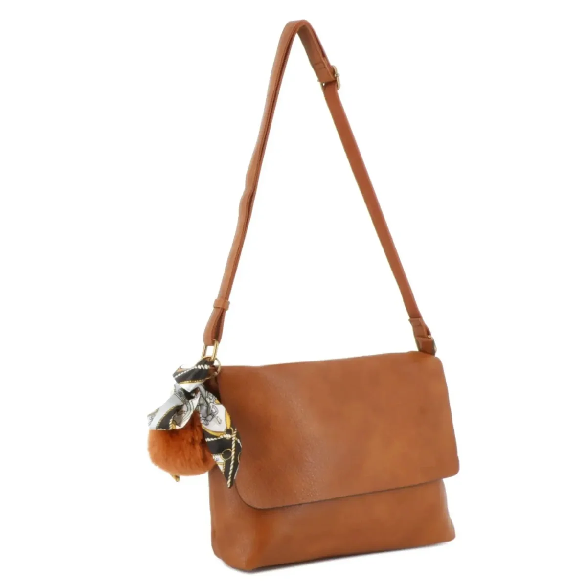 Sac Bandoulière Souple Pompon Foulard camel