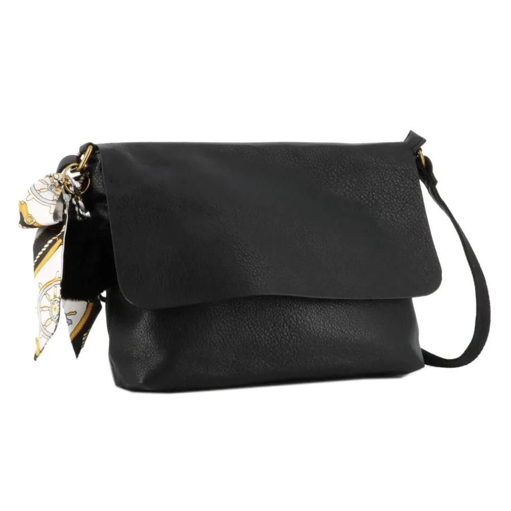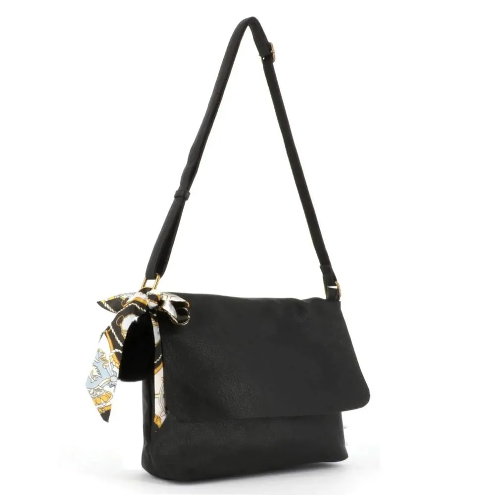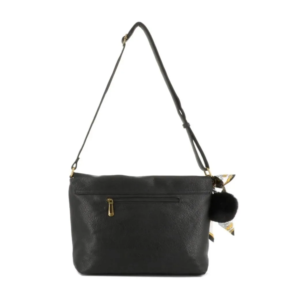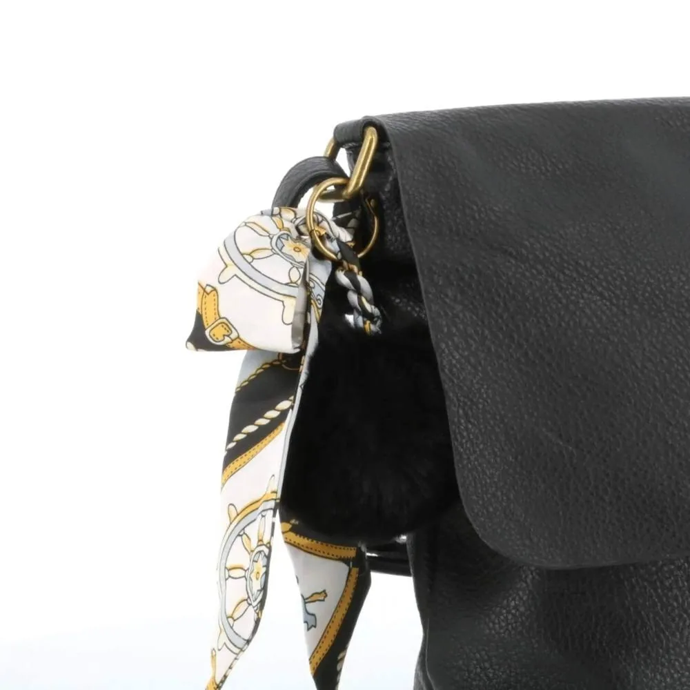 Sac Bandoulière Souple Pompon Foulard noir