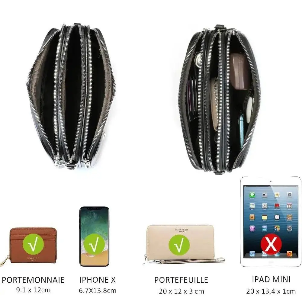 Sac bandoulières femme multipoches noir