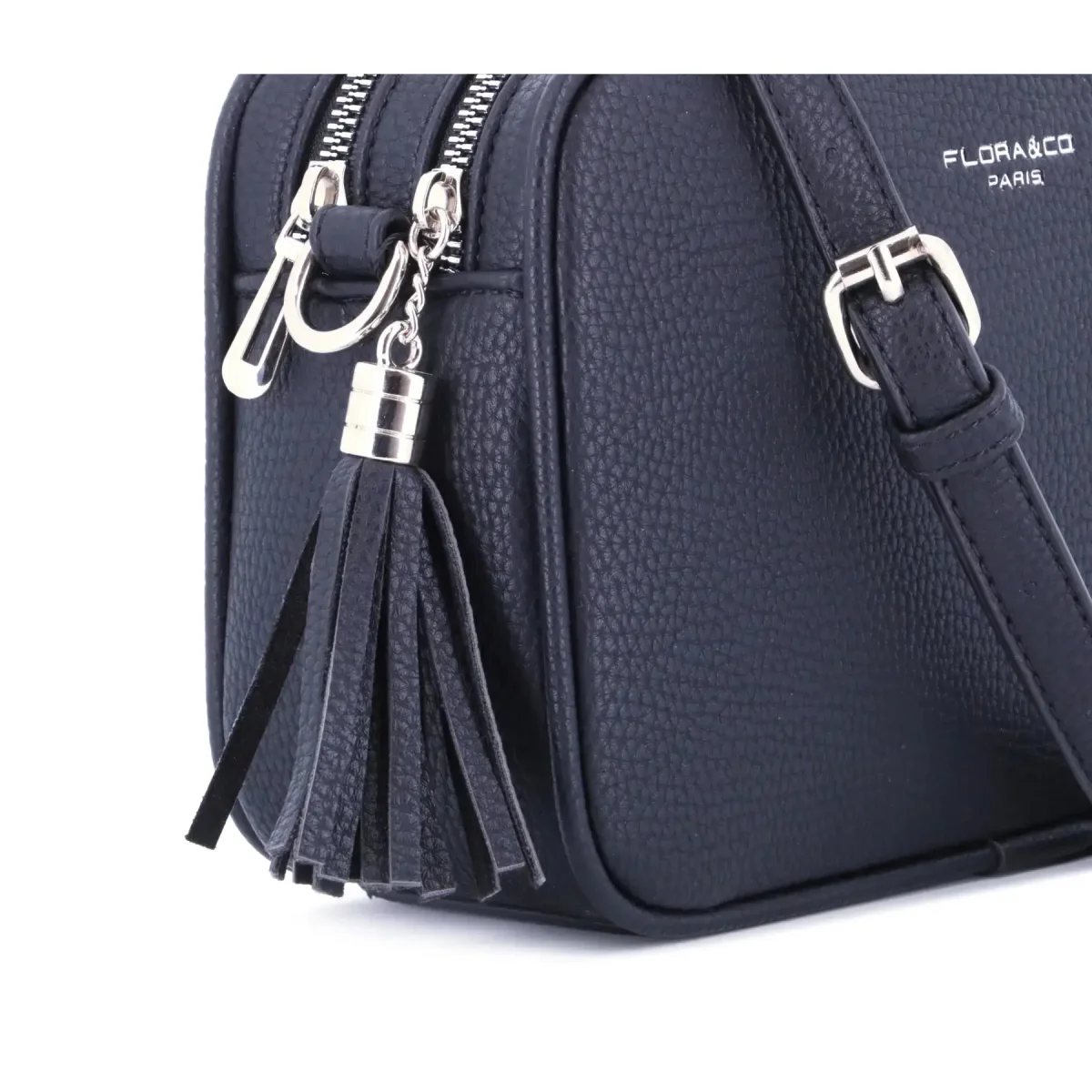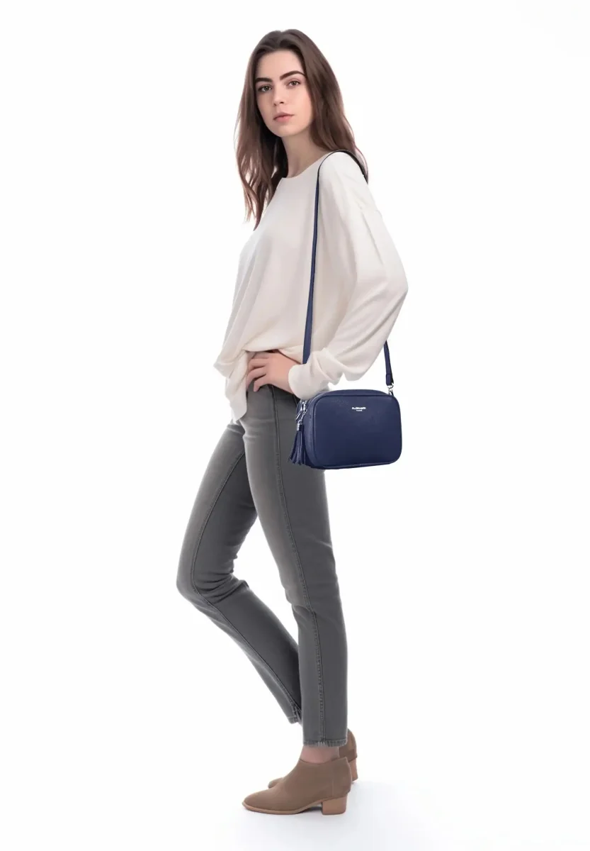 Sac caméra bandoulière femme frange bleu marine