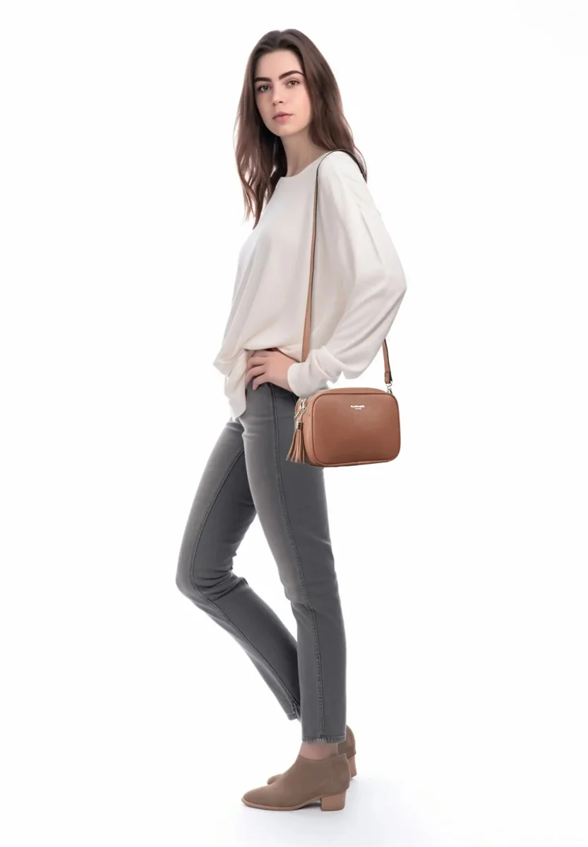 Sac caméra bandoulière femme léger camel