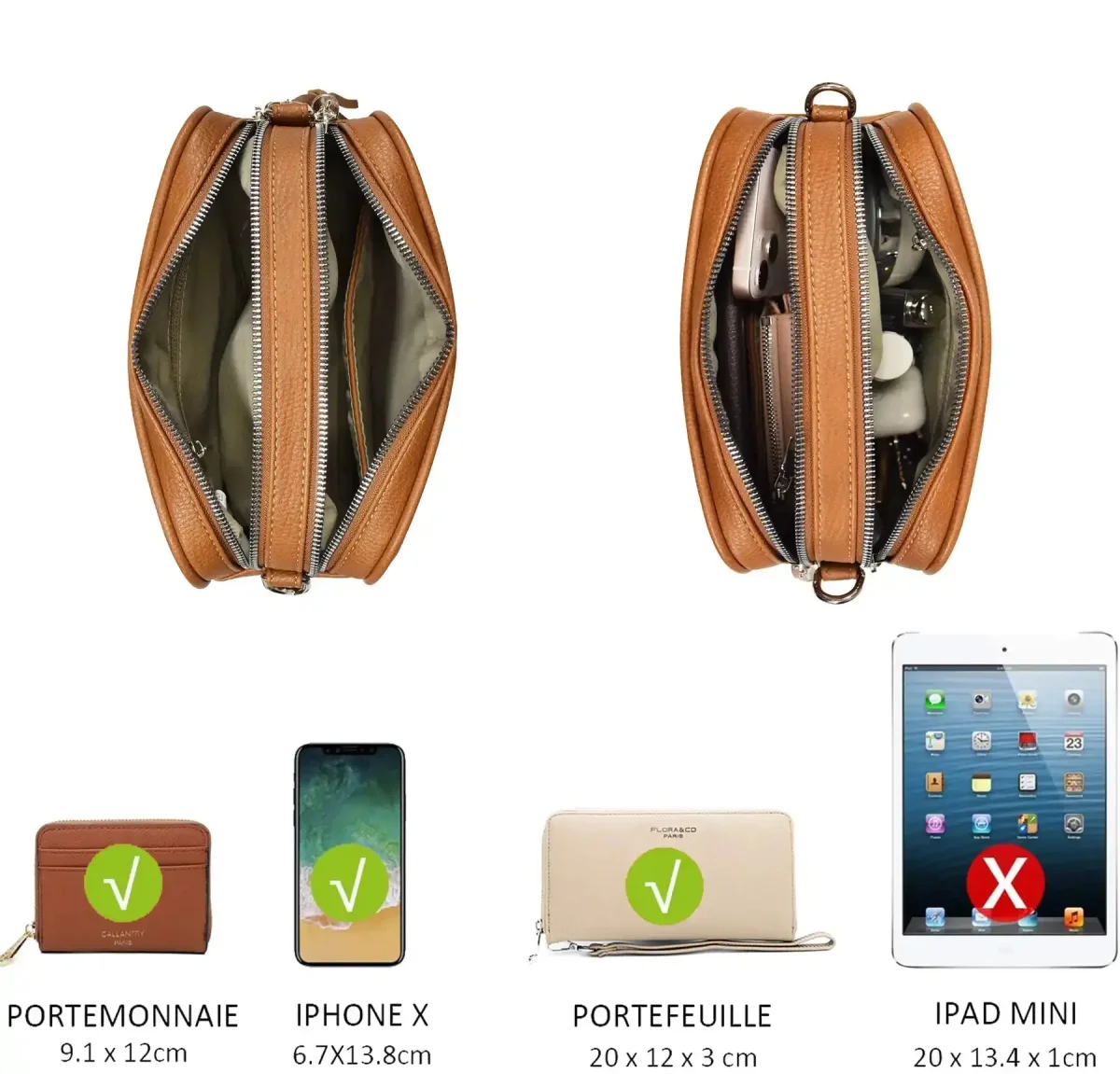Mini sac bandoulière femme souple Camel