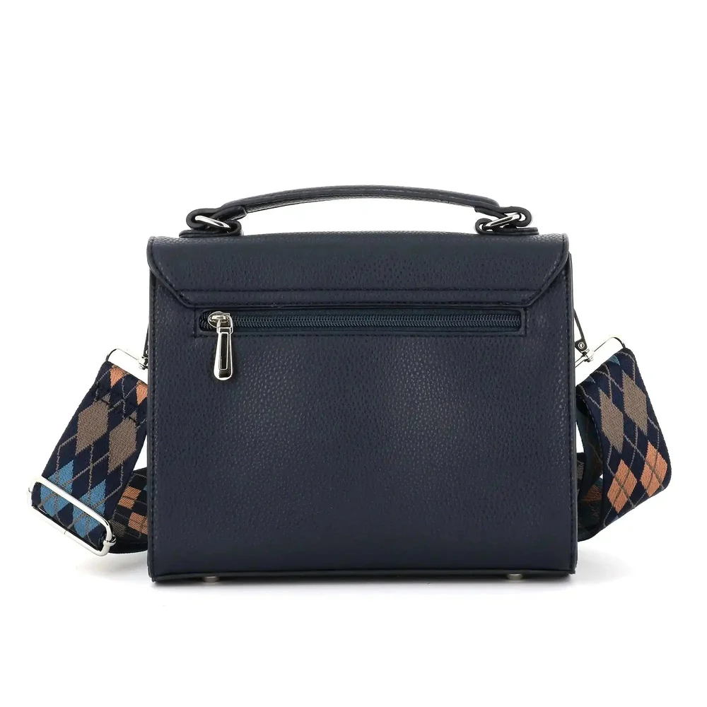 Sac cartable bandoulière femme broderie bleu