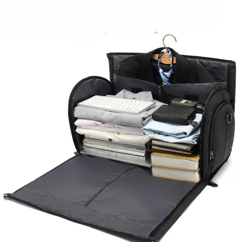 - Rangement : 1 poche principale zippée, 1 poche à costume | 1 poche à chaussure zippée | 2 poches frontales avec rabats protecteurs